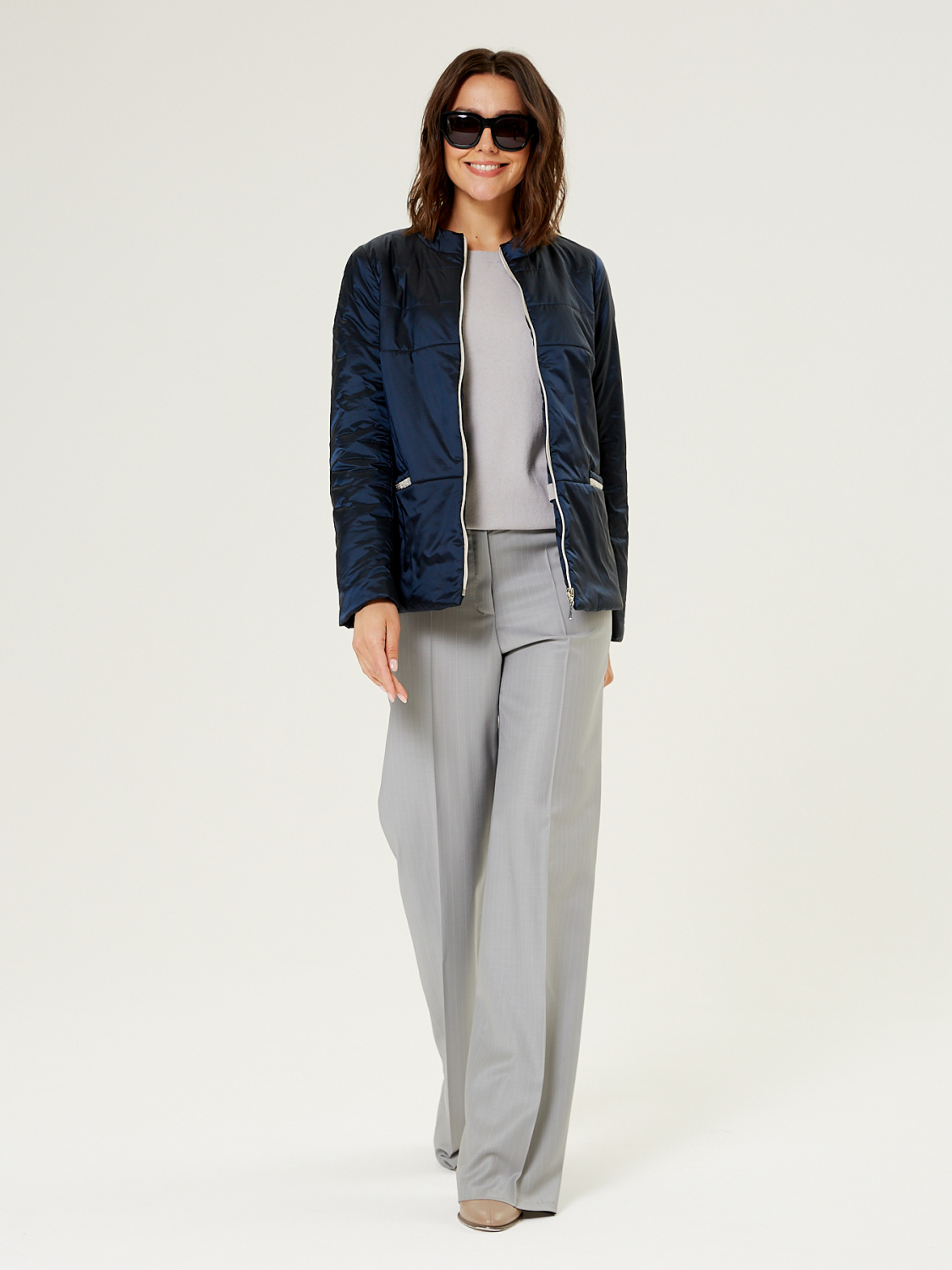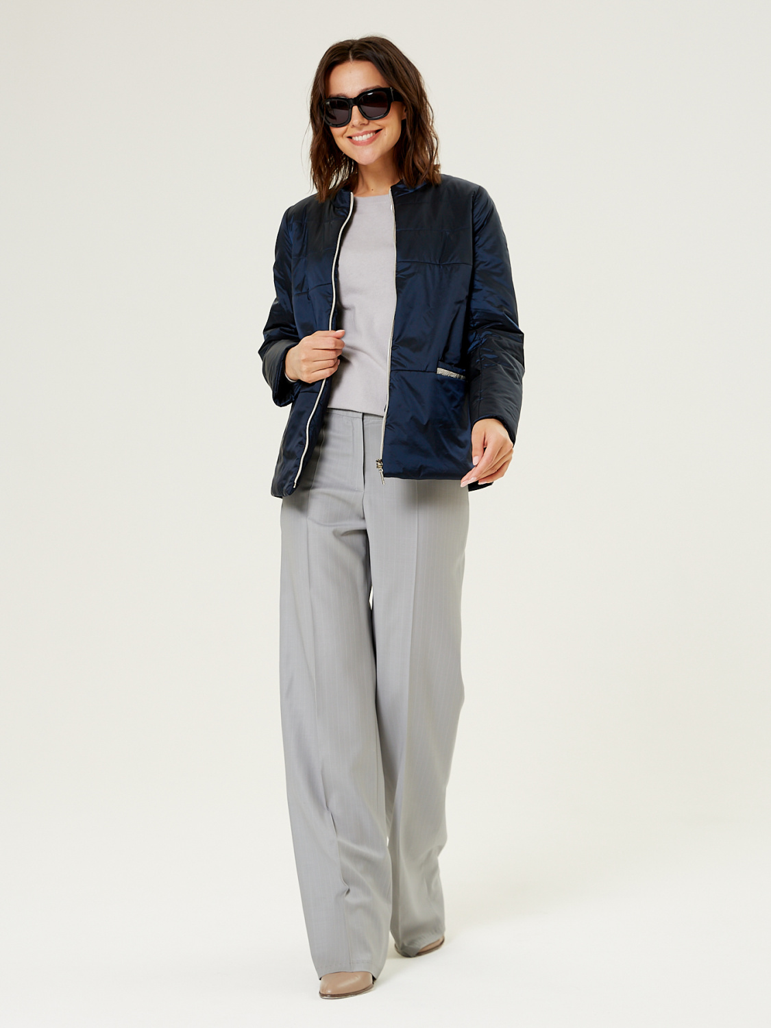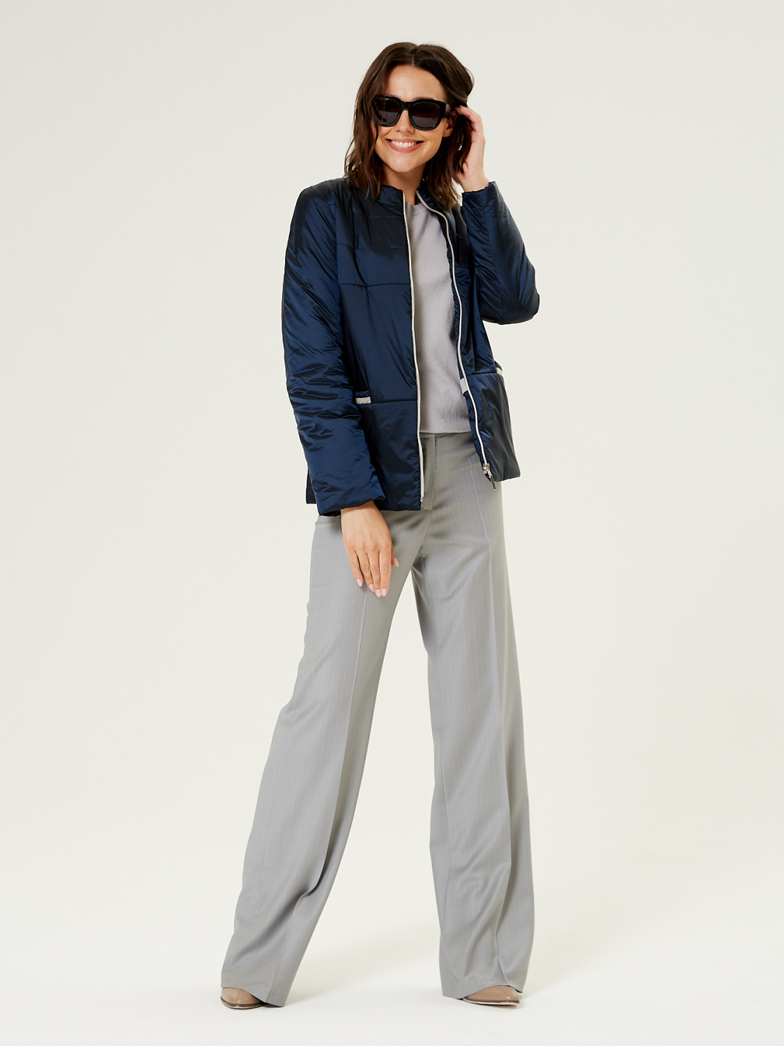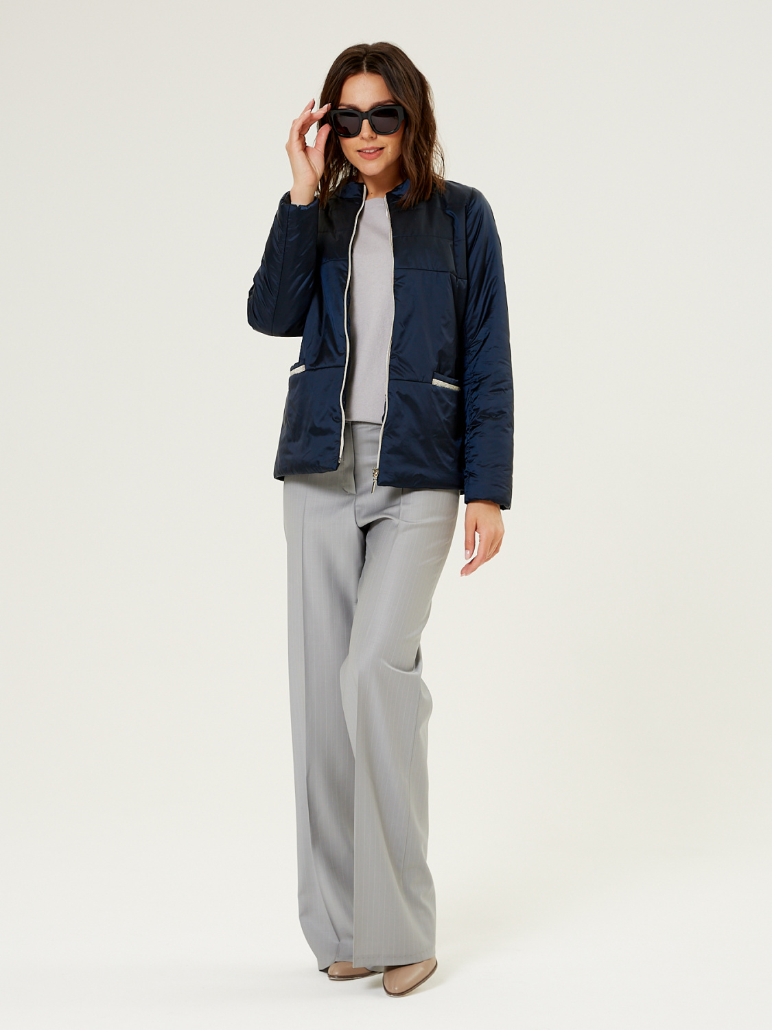 Демисезонная женская куртка полуприлегающего силуэта, дополненная итальянским утеплителем ValtherM. На полочках обработаны карманы с декоративной тесьмой. Для III роста длина изделия по спинке 64 cм.