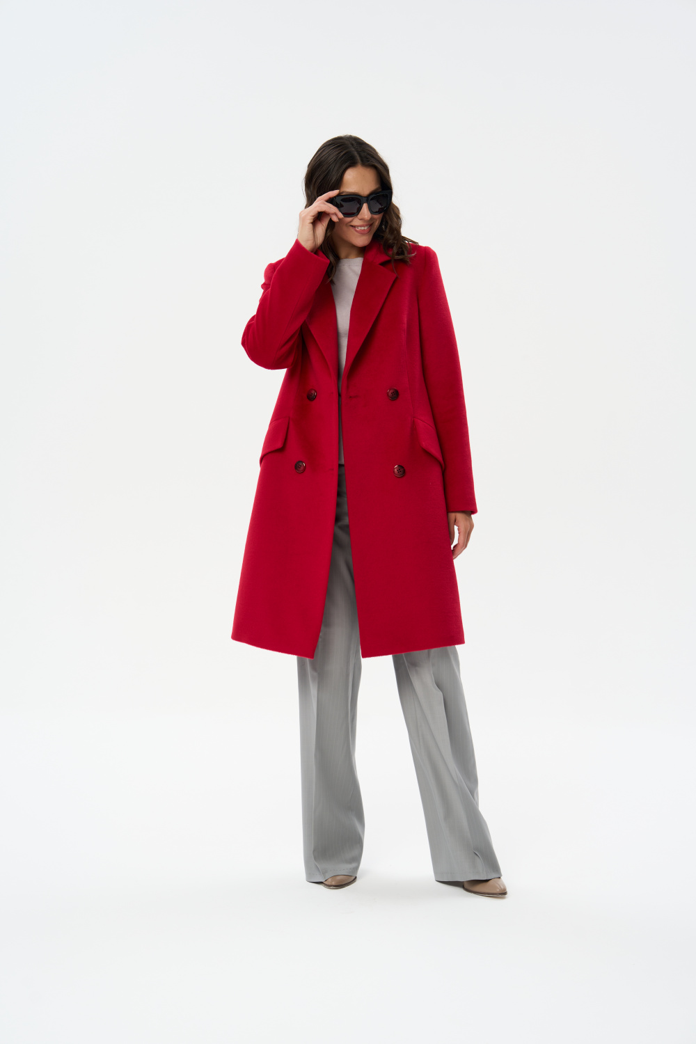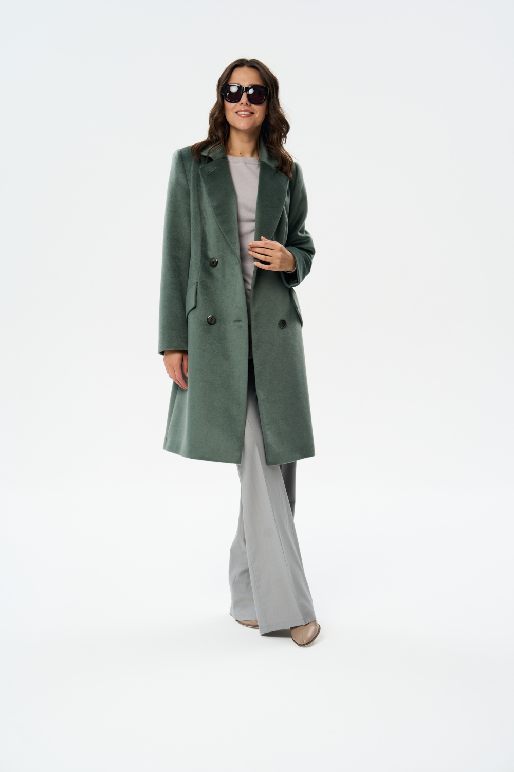 Женское демисезонное пальто из высококачественной вирджинской шерсти, полуприлегающего силуэта. Двубортное с застежкой на четыре пуговицы. Воротник отложной ,английский. Лацкан застегивается на пуговицу. При желании клапан можно убрать внутрь кармана ,в результате чего получается карман с листочкой.