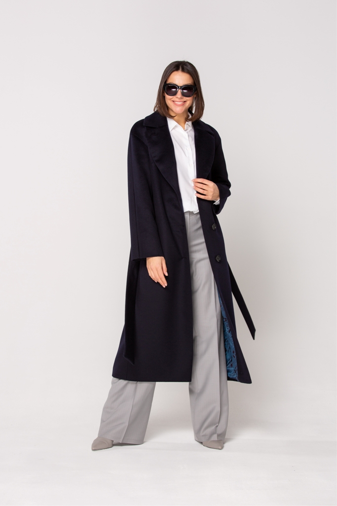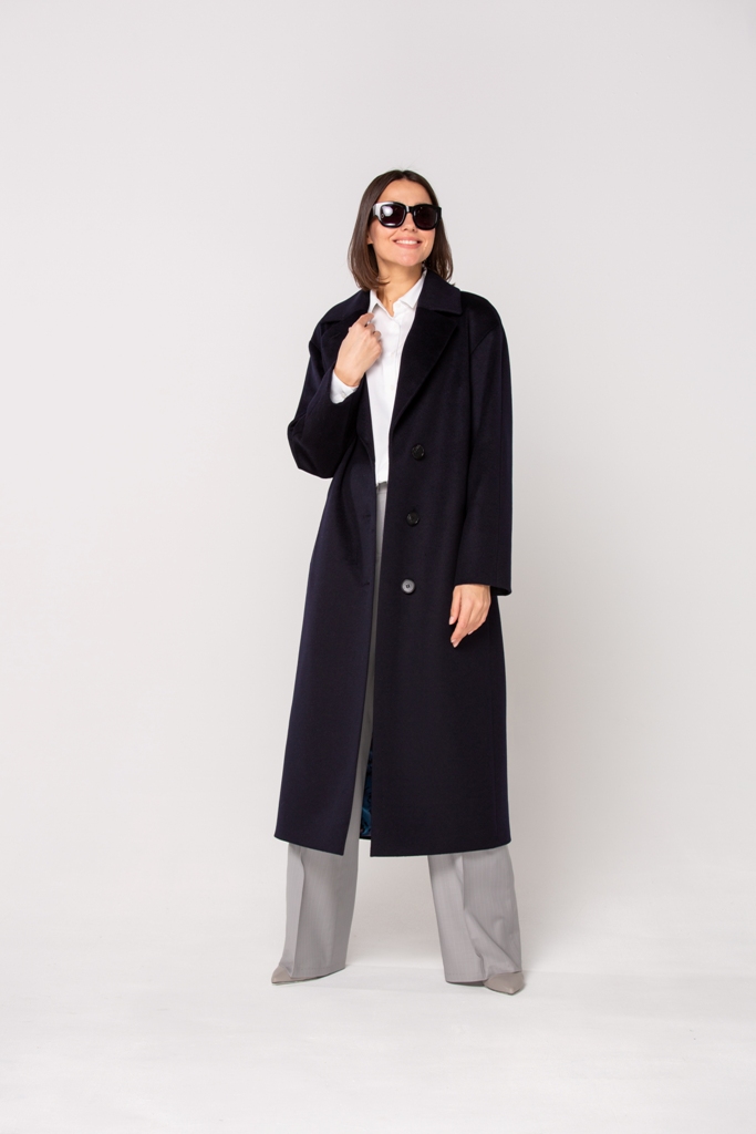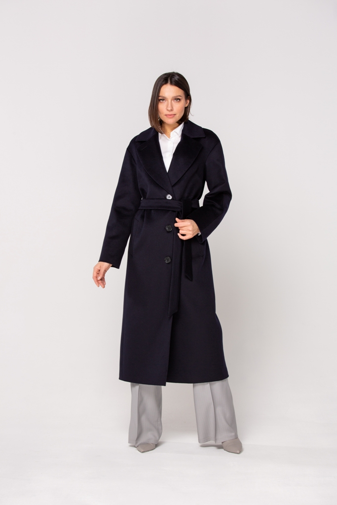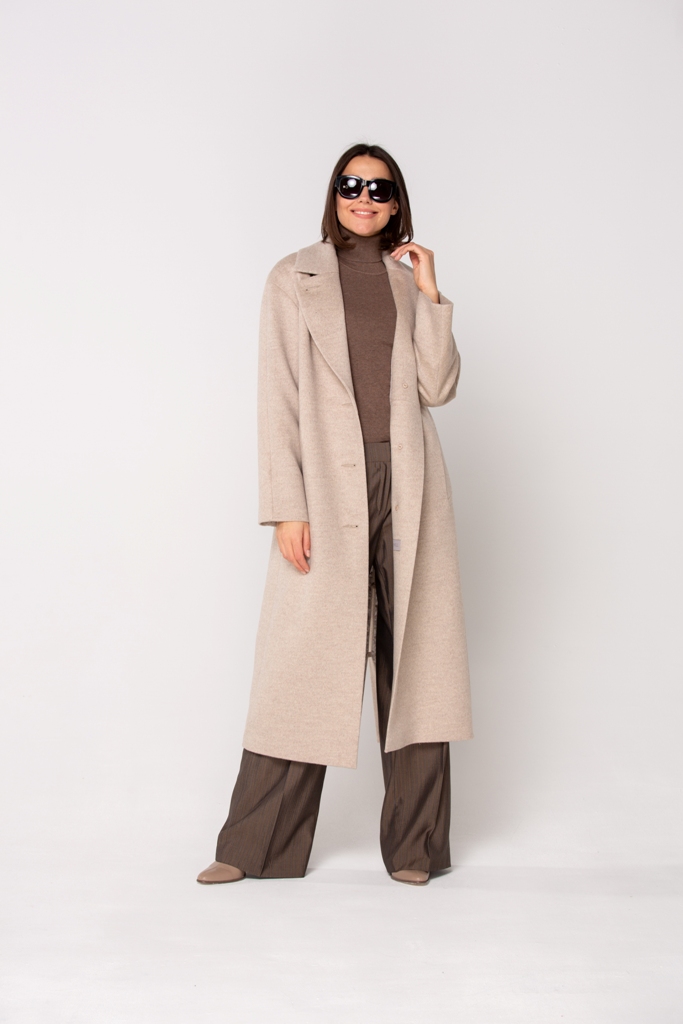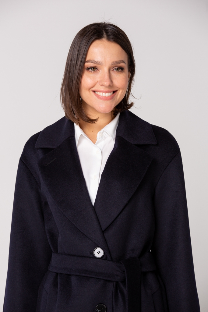 Женское демисезонное пальто, полуприлегающего силуэта из чистошерстянной ткани. Однобортное с застежкой на три пуговицы. Воротник отложной английский с лацканом, застегивающимся на пуговицу.