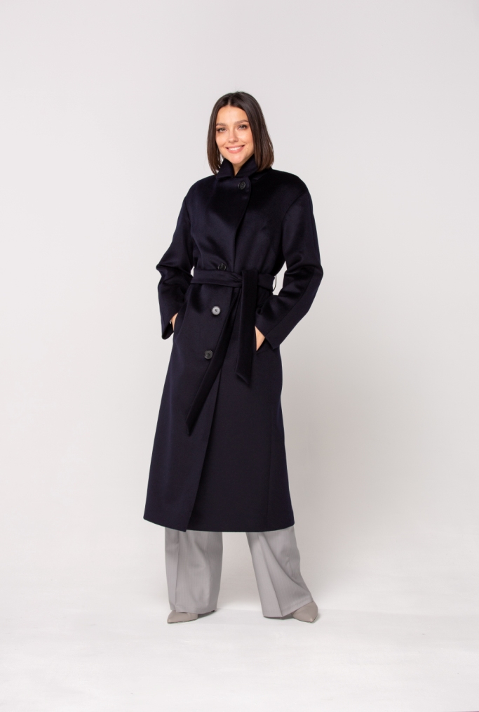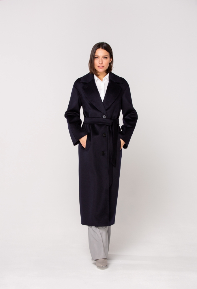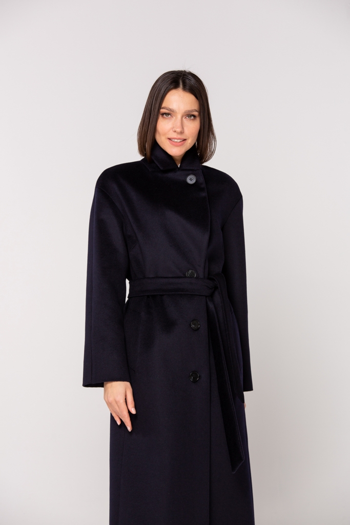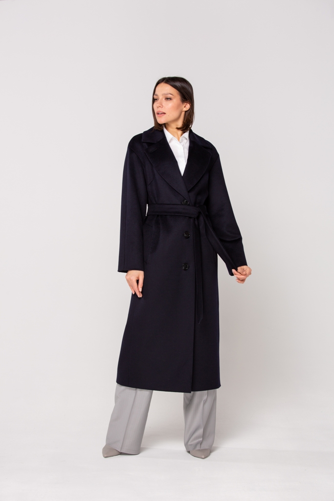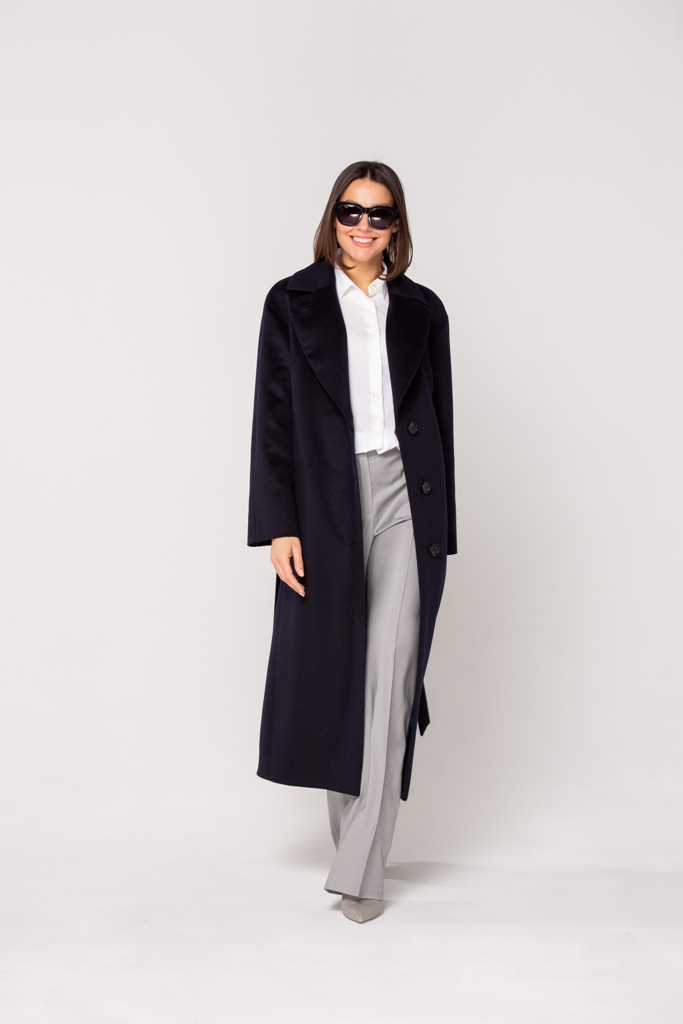 Женское демисезонное пальто, полуприлегающего силуэта из чистошерстянной ткани. Однобортное с застежкой на три пуговицы. Воротник отложной английский с лацканом, застегивающимся на пуговицу.