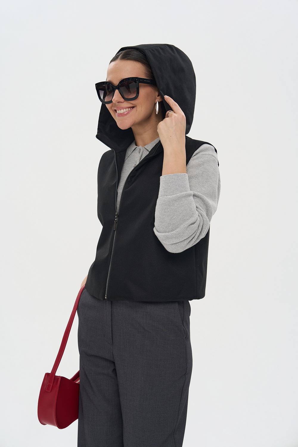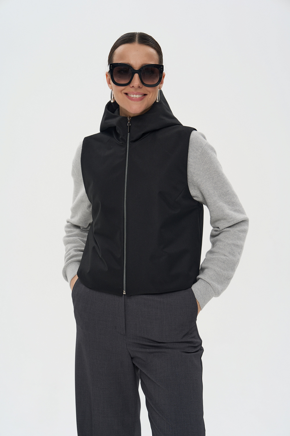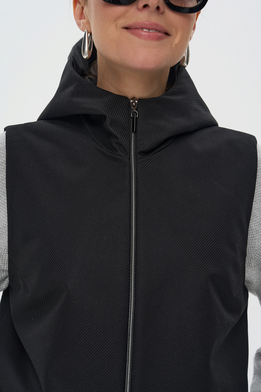 Жилет женский дополнен удобной и элегантной молнией. Капюшон защитит Ваши волосы в дождливую погоду. Универсальный прямой силуэт позволяет носить жилетку, как поверх верхней одежды, так и под Ваше любимое пальто или куртку, в качестве дополнительного утепляющего слоя. В более теплую погоду жилетка прекрасно впишется и в повседневный, и в элегантный образы.