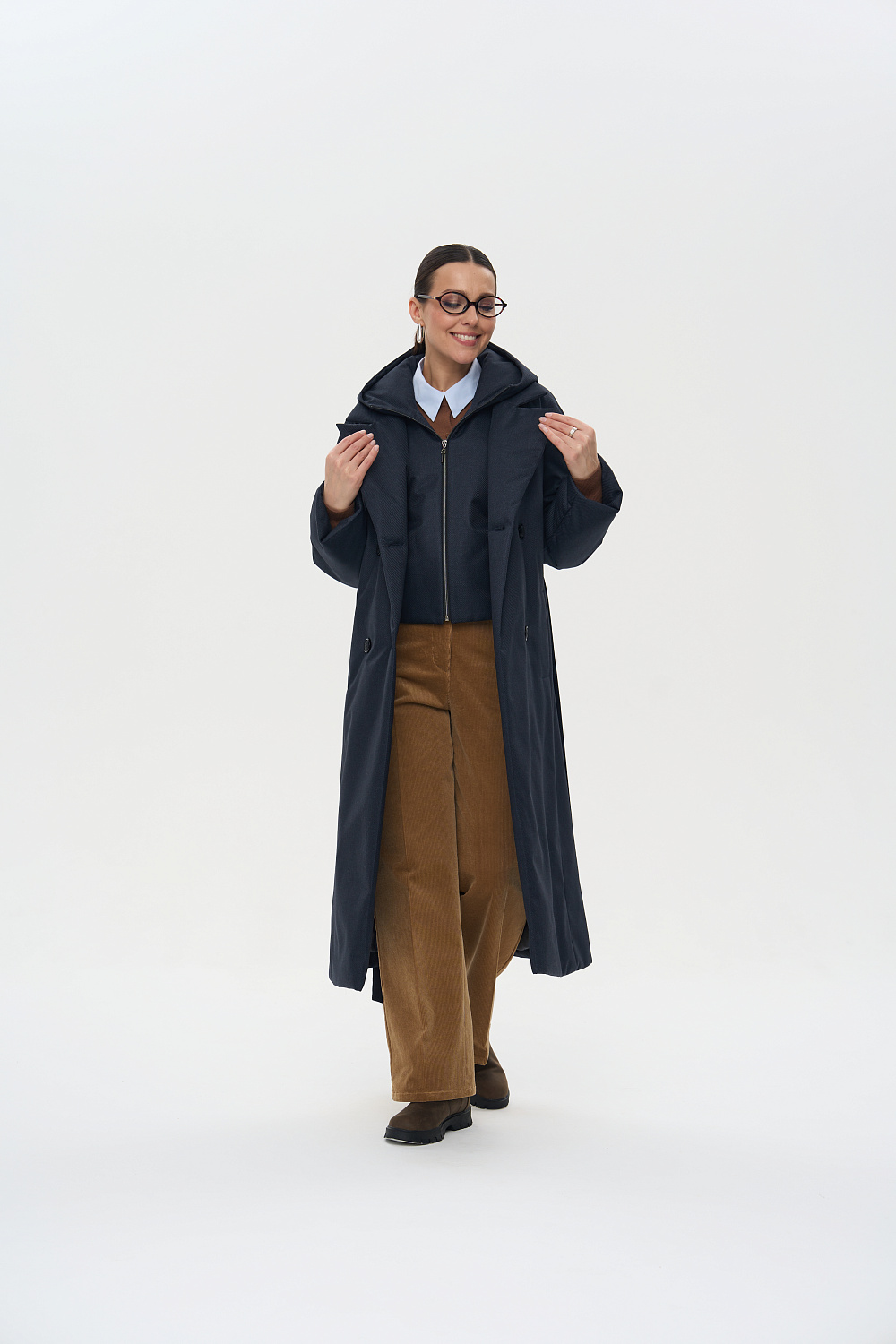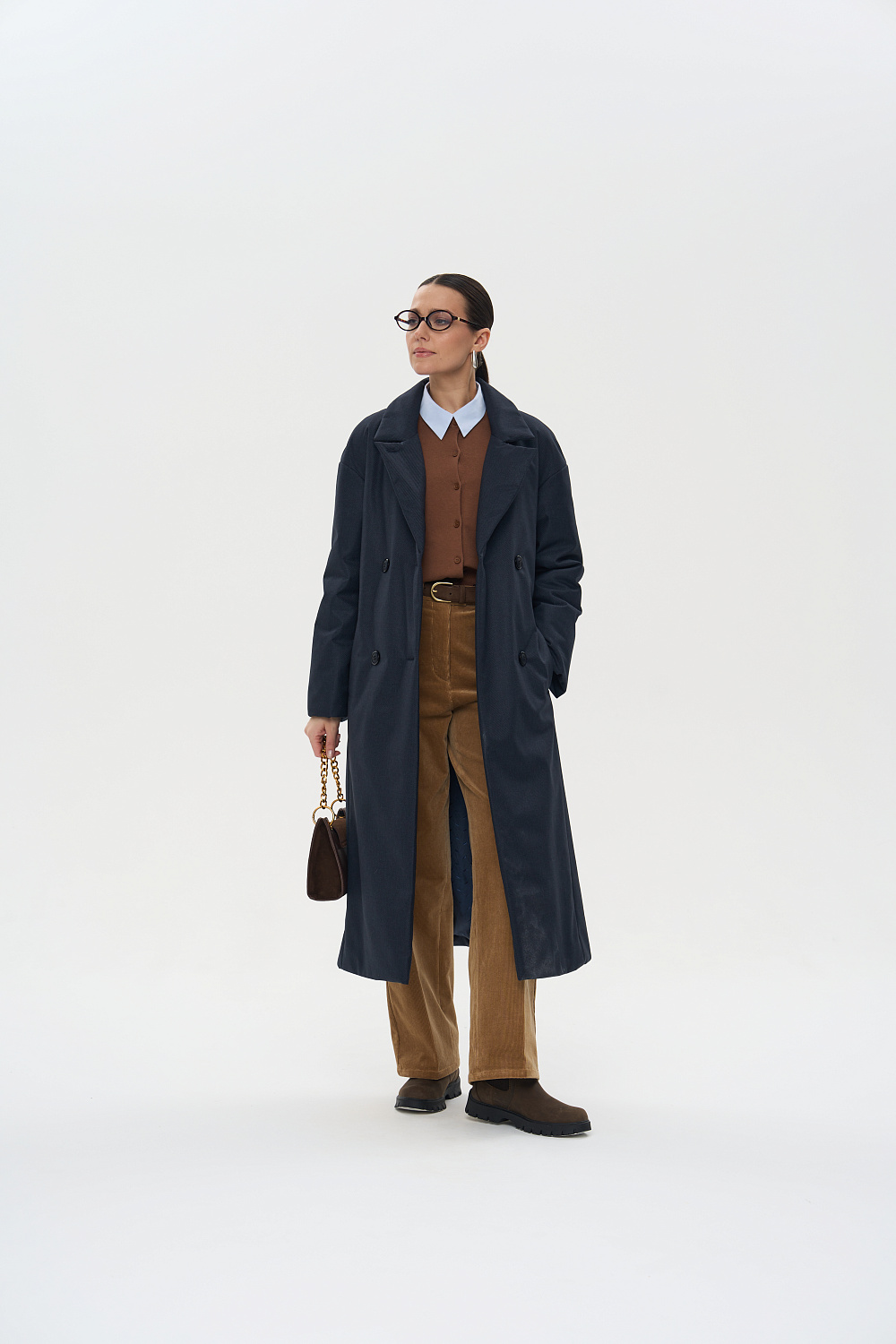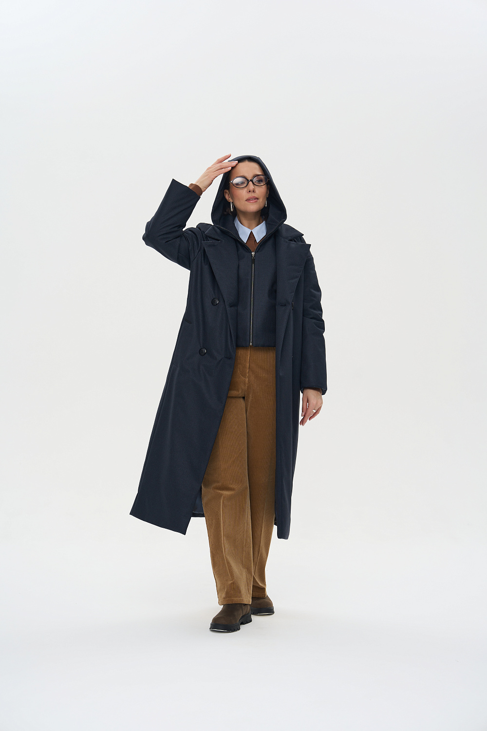Пальто, утепленное женское прямого силуэта, двубортное, с застежками на 4 основные пуговицы и 1 супатную. Воротник – английский отложной, застегивающийся в стойку. На полочках обработаны удобные карманы в шве. Длина рукава может регулироваться отворотом. Женское пальто длины ниже колена (119 см) позволяет сочетать его с любыми предметами Вашего гардероба. Выпускается в двух ростах: в среднем (164-170 см, III) и высоком росте (170-176, IV).