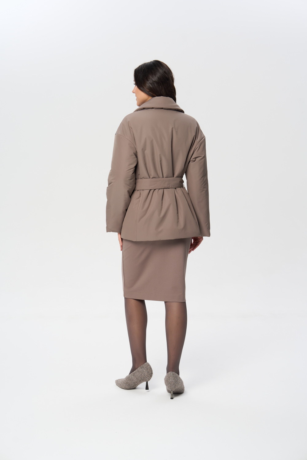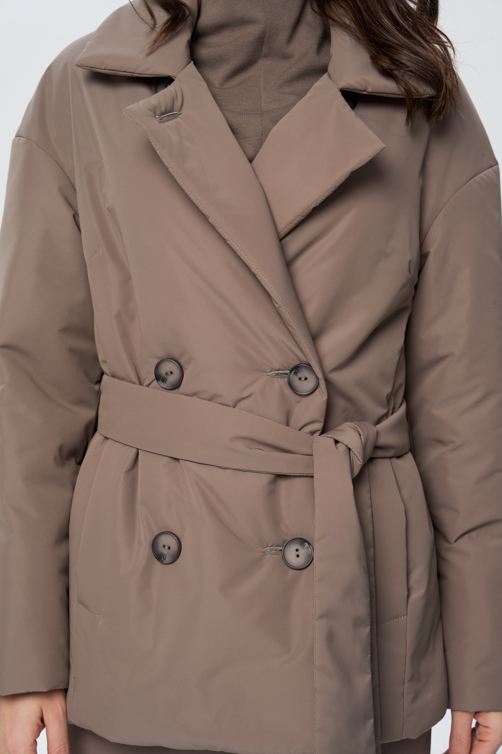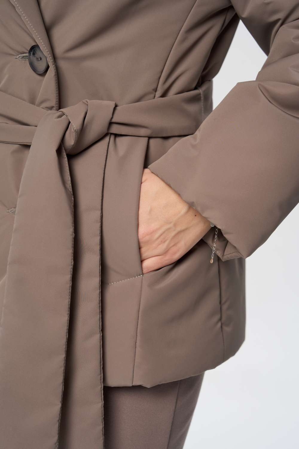 Стильный прямой силуэт, пояс на талии подчеркнет вашу женственность. Куртка двубортное, с застежками на 3 пуговиц. Отложной английский воротник, при желании трансформируется в стильную стойку. На полочках обработаны удобные карманы в шве. Длина рукава может регулироваться отворотом.