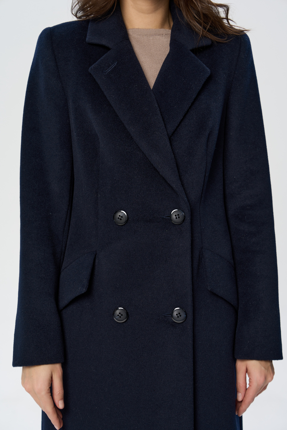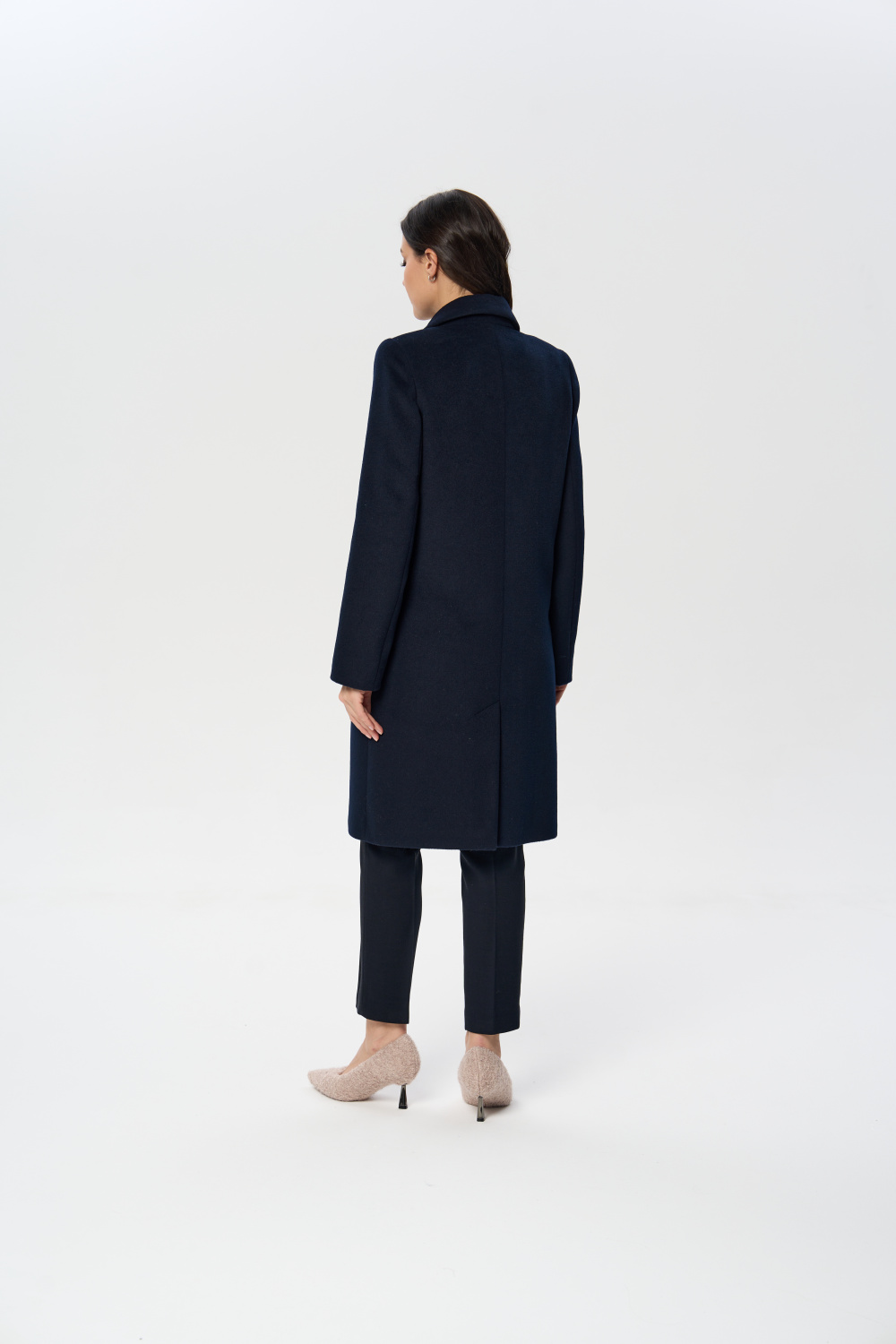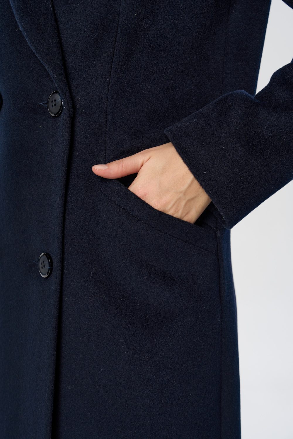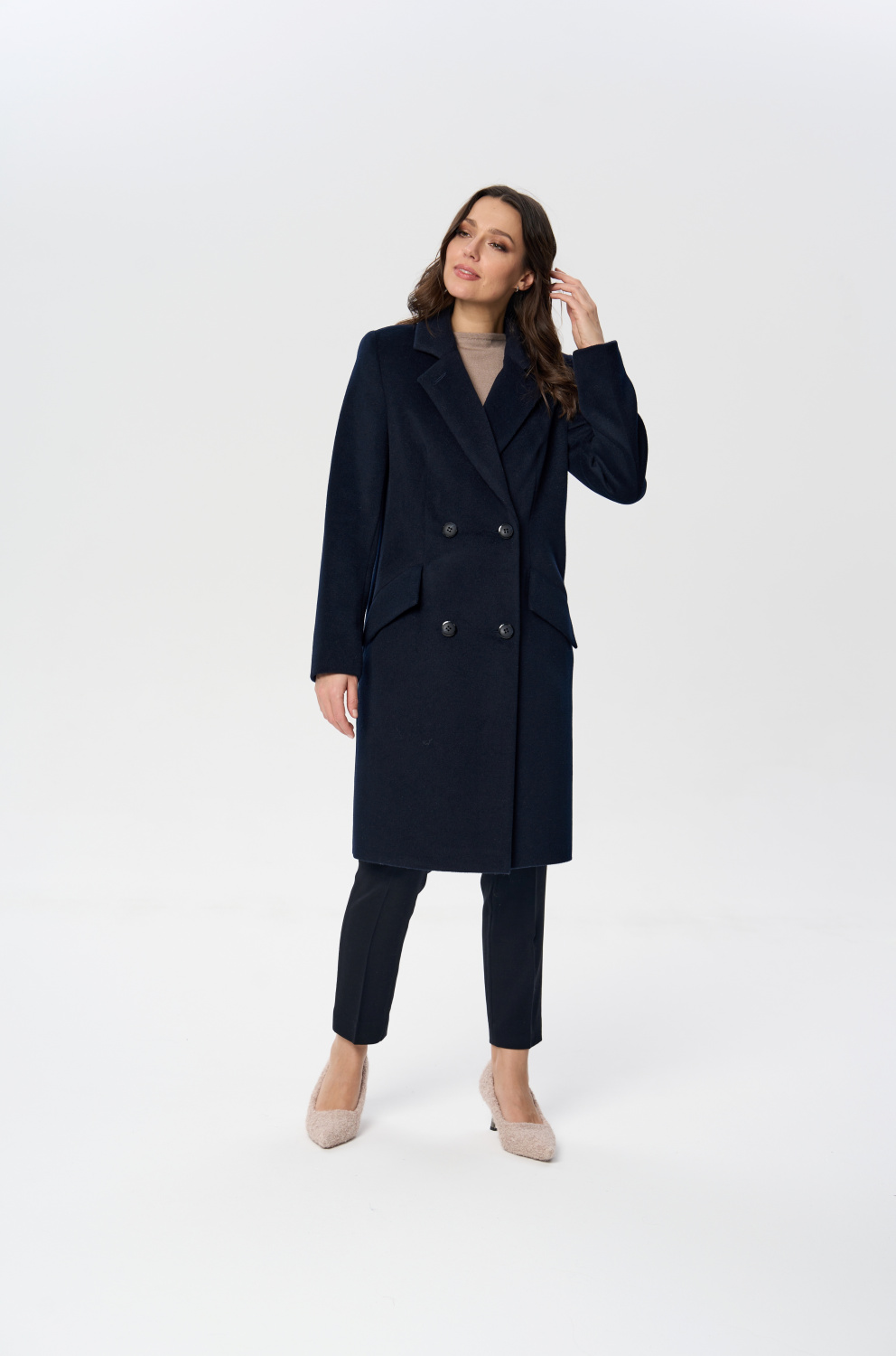 Женское демисезонное пальто из высококачественной вирджинской шерсти, полуприлегающего силуэта. Двубортное с застежкой на четыре пуговицы. Воротник отложной ,английский. Лацкан застегивается на пуговицу. При желании клапан можно убрать внутрь кармана ,в результате чего получается карман с листочкой.