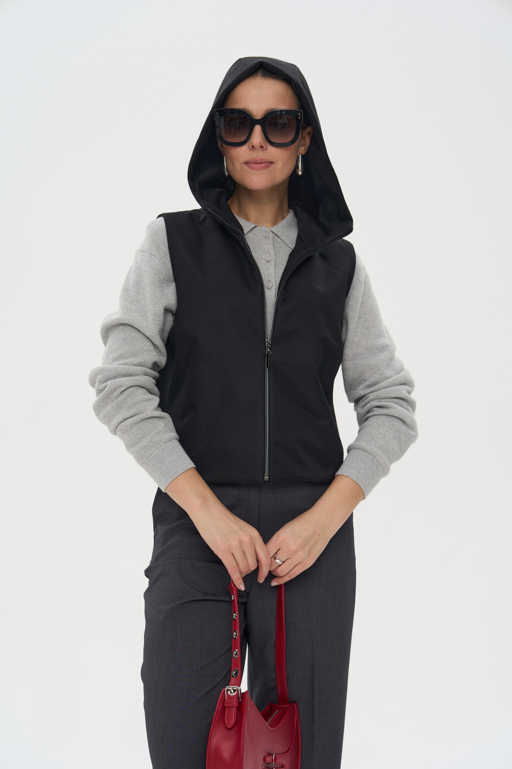 Жилет женский дополнен удобной и элегантной молнией. Капюшон защитит Ваши волосы в дождливую погоду. Универсальный прямой силуэт позволяет носить жилетку, как поверх верхней одежды, так и под Ваше любимое пальто или куртку, в качестве дополнительного утепляющего слоя. В более теплую погоду жилетка прекрасно впишется и в повседневный, и в элегантный образы.