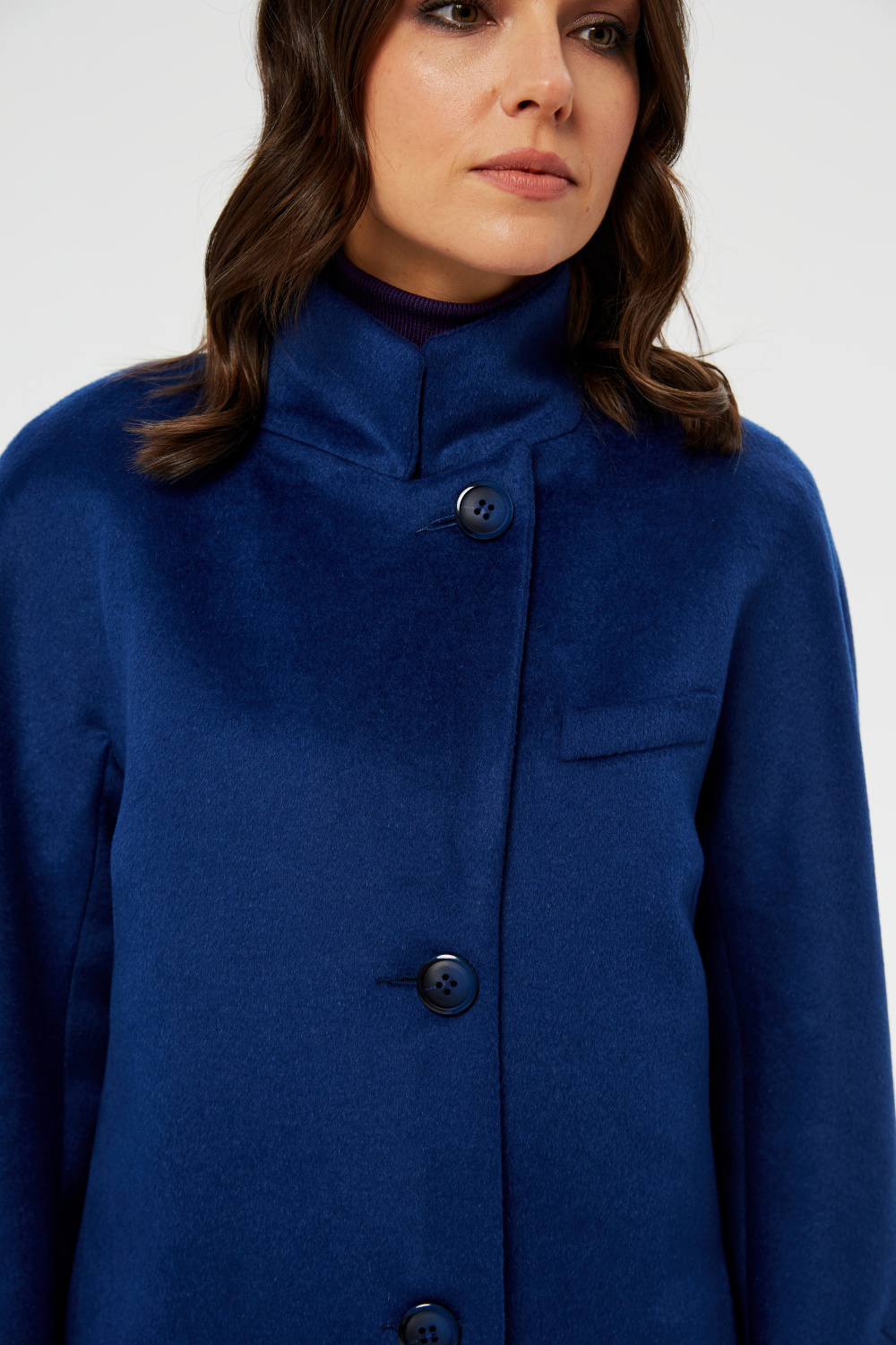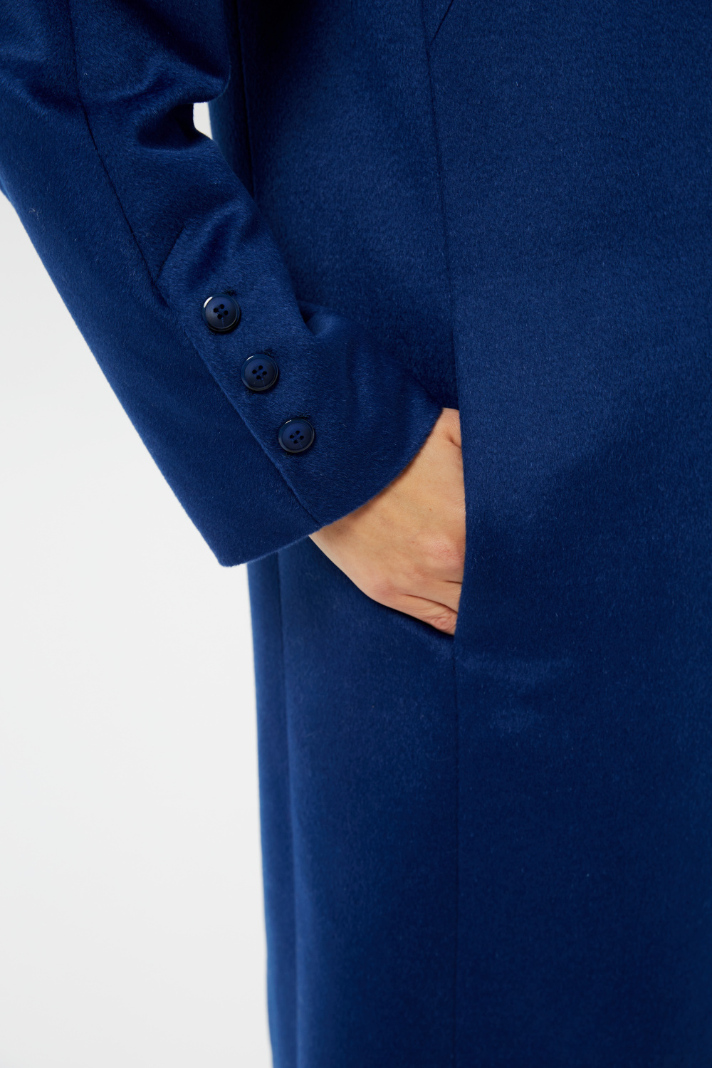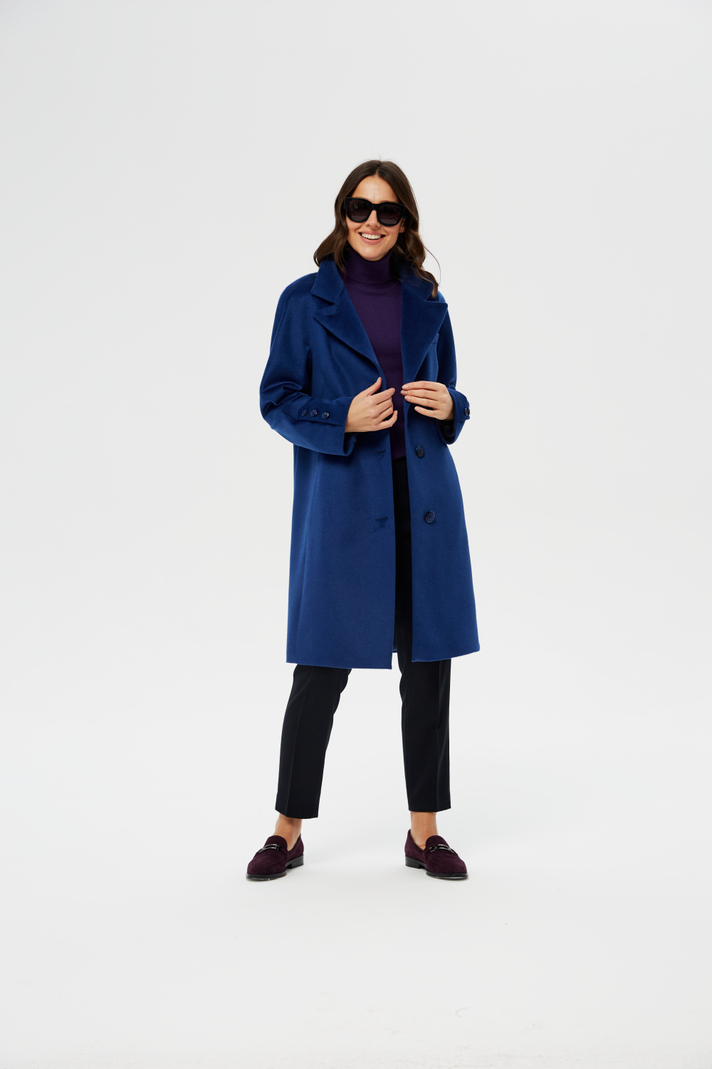 Однобортное женское демисезонное пальто прямого силуэта. Застежка на 4 пуговицы, Воротник  английский, застегивающийся в стойку. В рельефах полочек обработаны карманы. Спинка со шлицей.