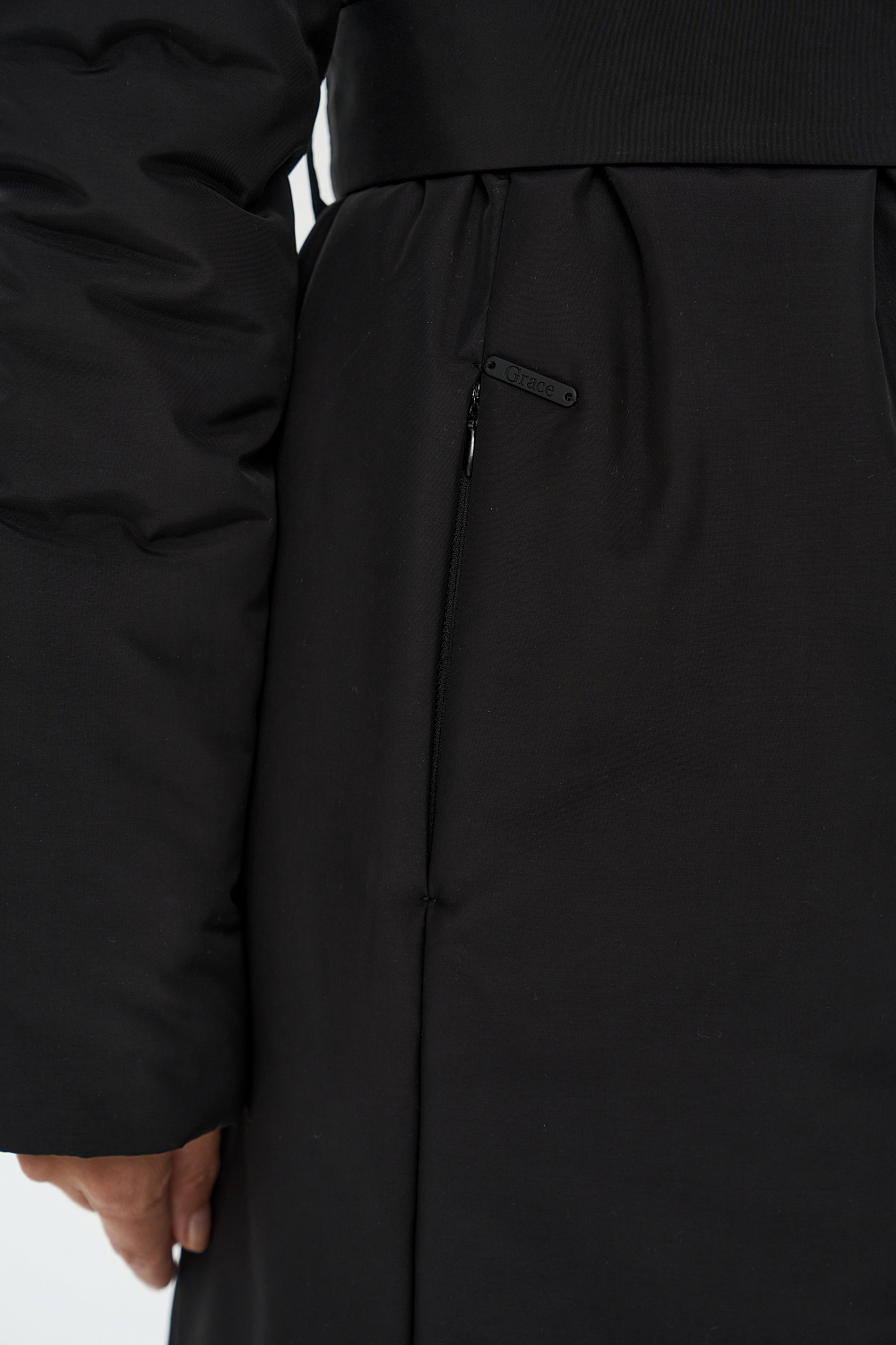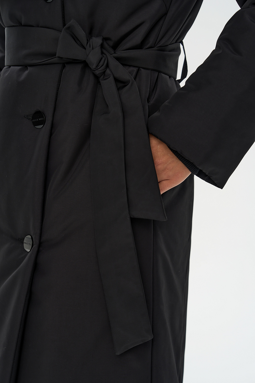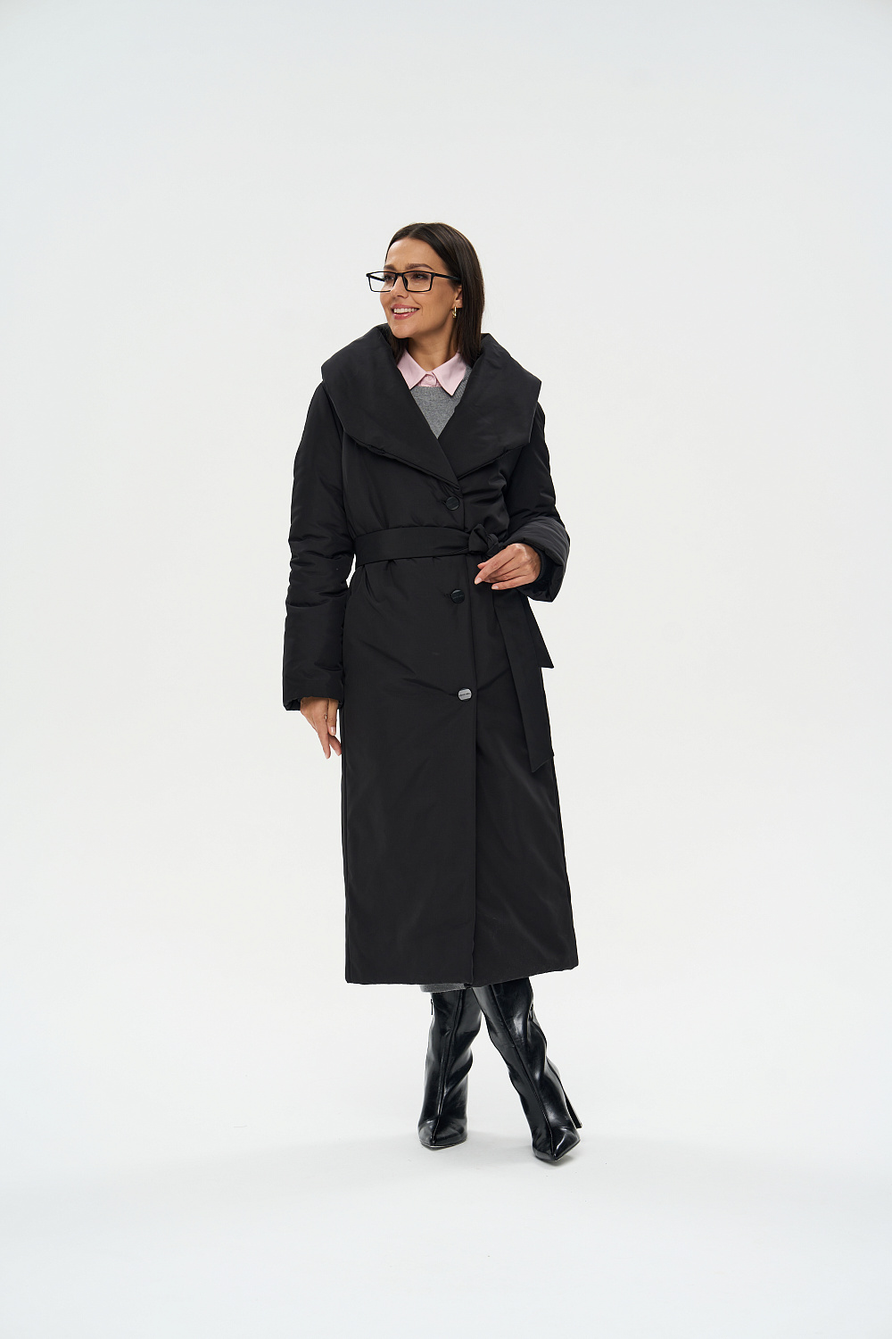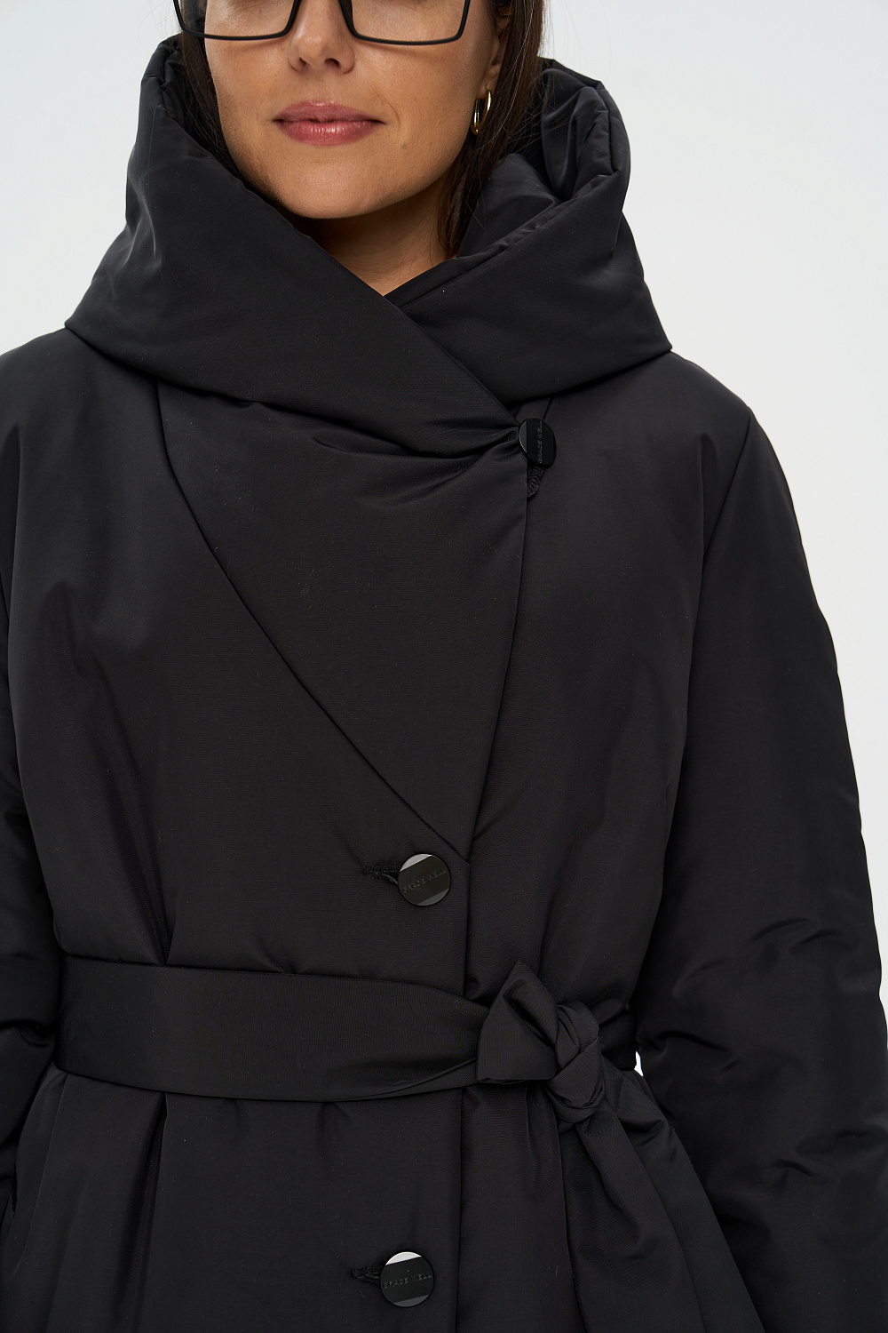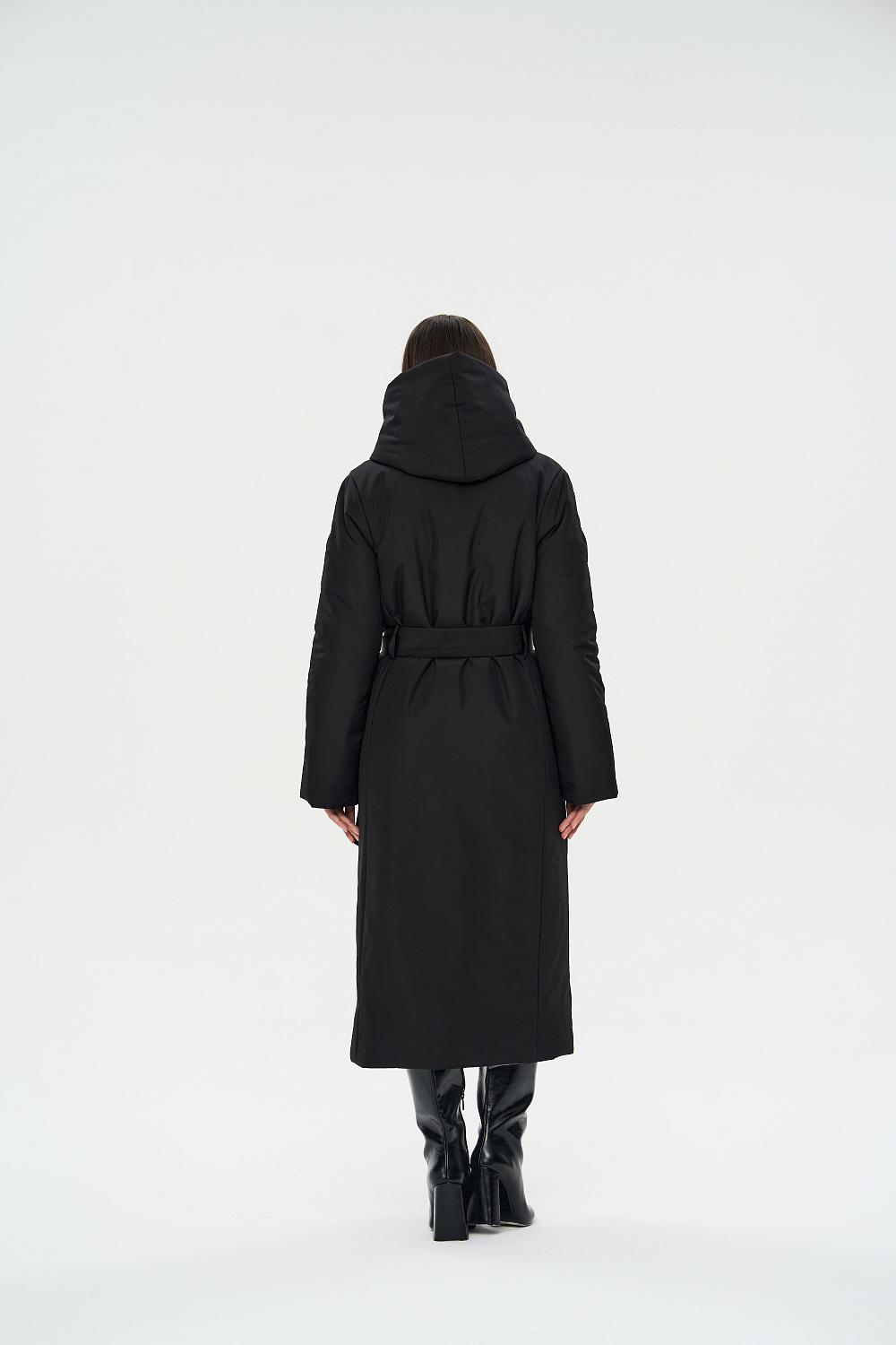 Пальто зимнее женское прямого силуэта, однобортное, застегивающаяся на 4 пуговицы. От ветренной погоды Вас защитит регулируемый фасонный капюшон, который трансформируется в объемную стойку. На полочках обработаны удобные карманы в шве на молнии. Длина рукава может регулироваться отворотом. Зимнее женское пальто оптимальной длины ниже колена позволяет сочетать его с любыми предметами Вашего гардероба. К пальто прилагается пояс.