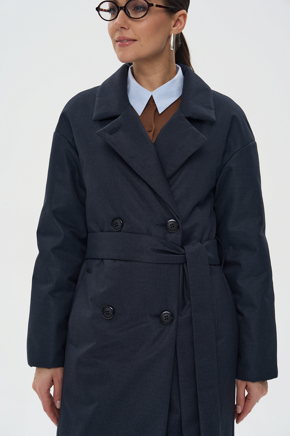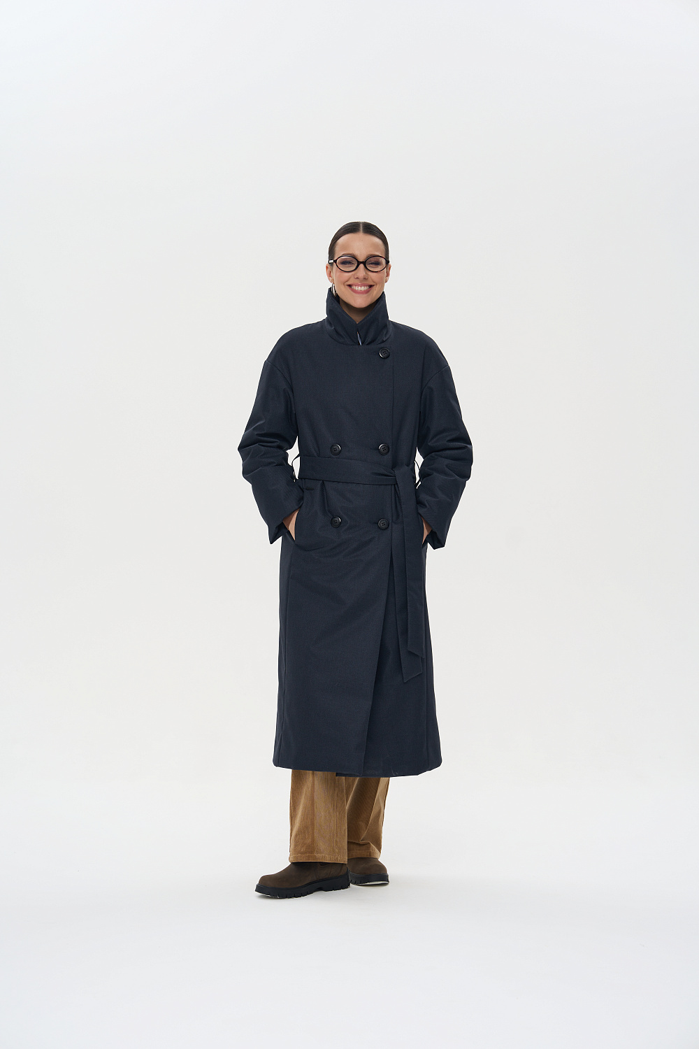 Пальто, утепленное женское прямого силуэта, двубортное, с застежками на 4 основные пуговицы и 1 супатную. Воротник – английский отложной, застегивающийся в стойку. На полочках обработаны удобные карманы в шве. Длина рукава может регулироваться отворотом. Женское пальто длины ниже колена (119 см) позволяет сочетать его с любыми предметами Вашего гардероба. Выпускается в двух ростах: в среднем (164-170 см, III) и высоком росте (170-176, IV).