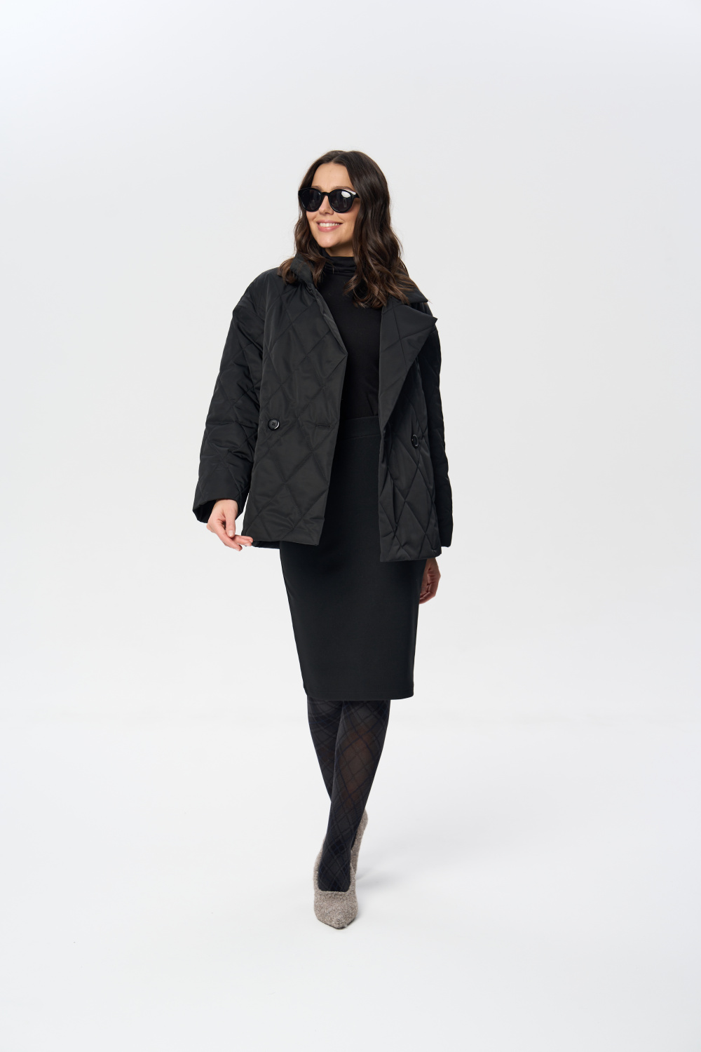 Куртка весенняя женская двубортная прямого силуэта, с застежками на 2 пуговицы. Отложной английский воротник, при желании трансформируется в стильную стойку. На полочках обработаны удобные карманы в шве. Длина рукава может регулироваться отворотом.