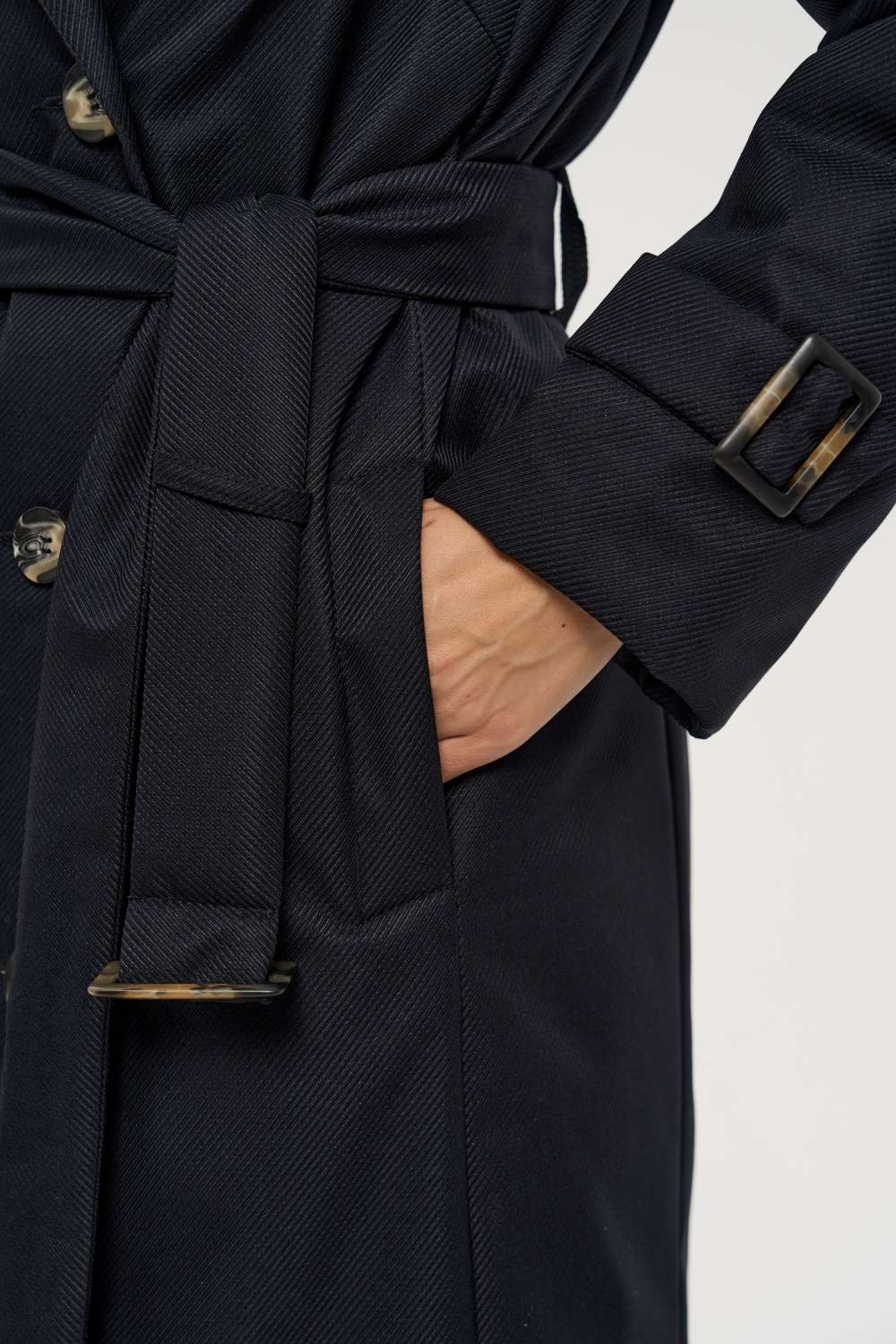 Двубортное пальто Палермо будет прекрасным партнером в демисезонное время года. Воротник отложной английский с лацканами, застегивающиеся на 6 пуговиц. В рельефах полочках обработаны карманы.