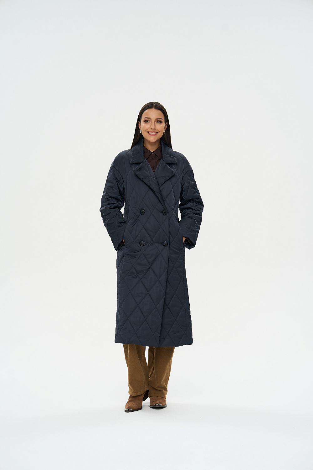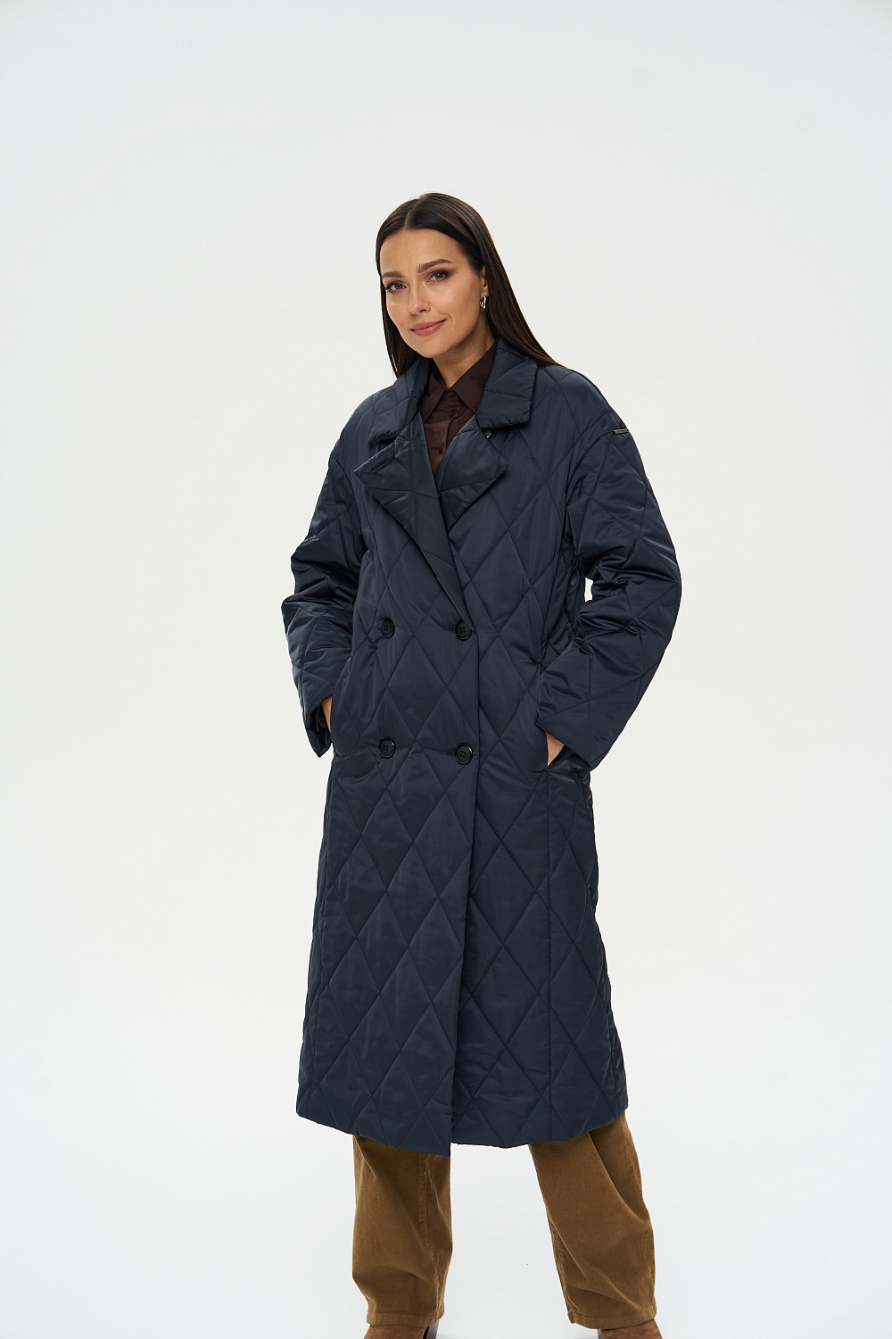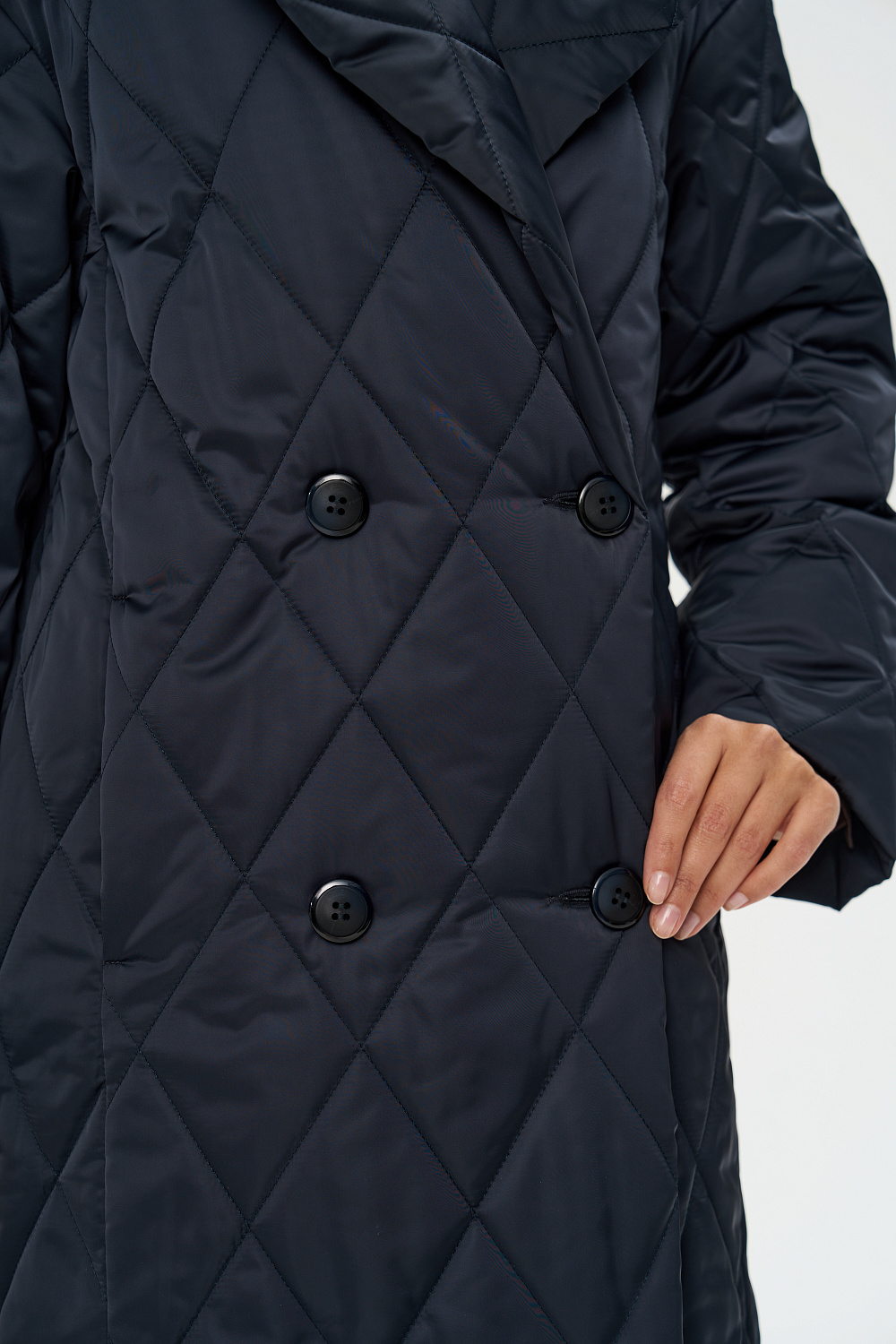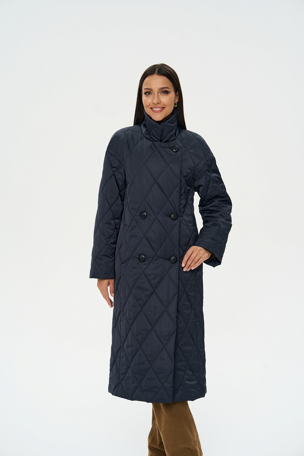 Женское осеннее пальто двубортное, с застежками на 4 основные пуговицы и 1 супатную. Отложной английский воротник, при желании трансформируется в стильную стойку. На полочках обработаны удобные карманы в шве. Длина рукава может регулироваться отворотом. Женское пальто длины ниже колена (119 см) позволяет сочетать его с любыми предметами Вашего гардероба.