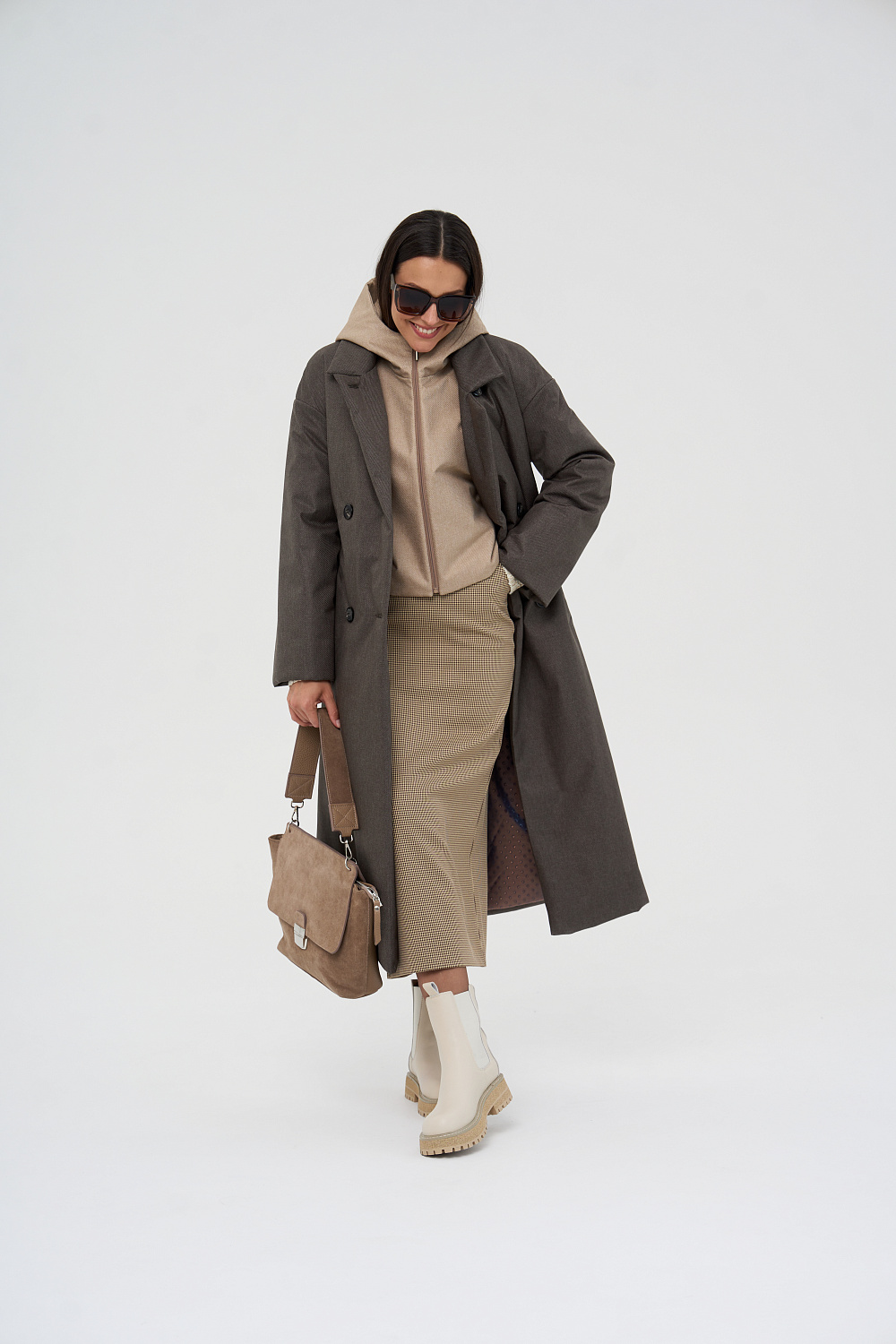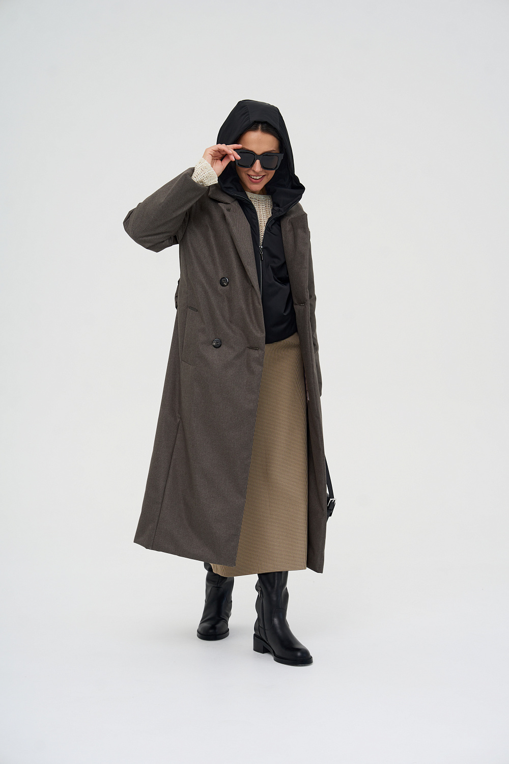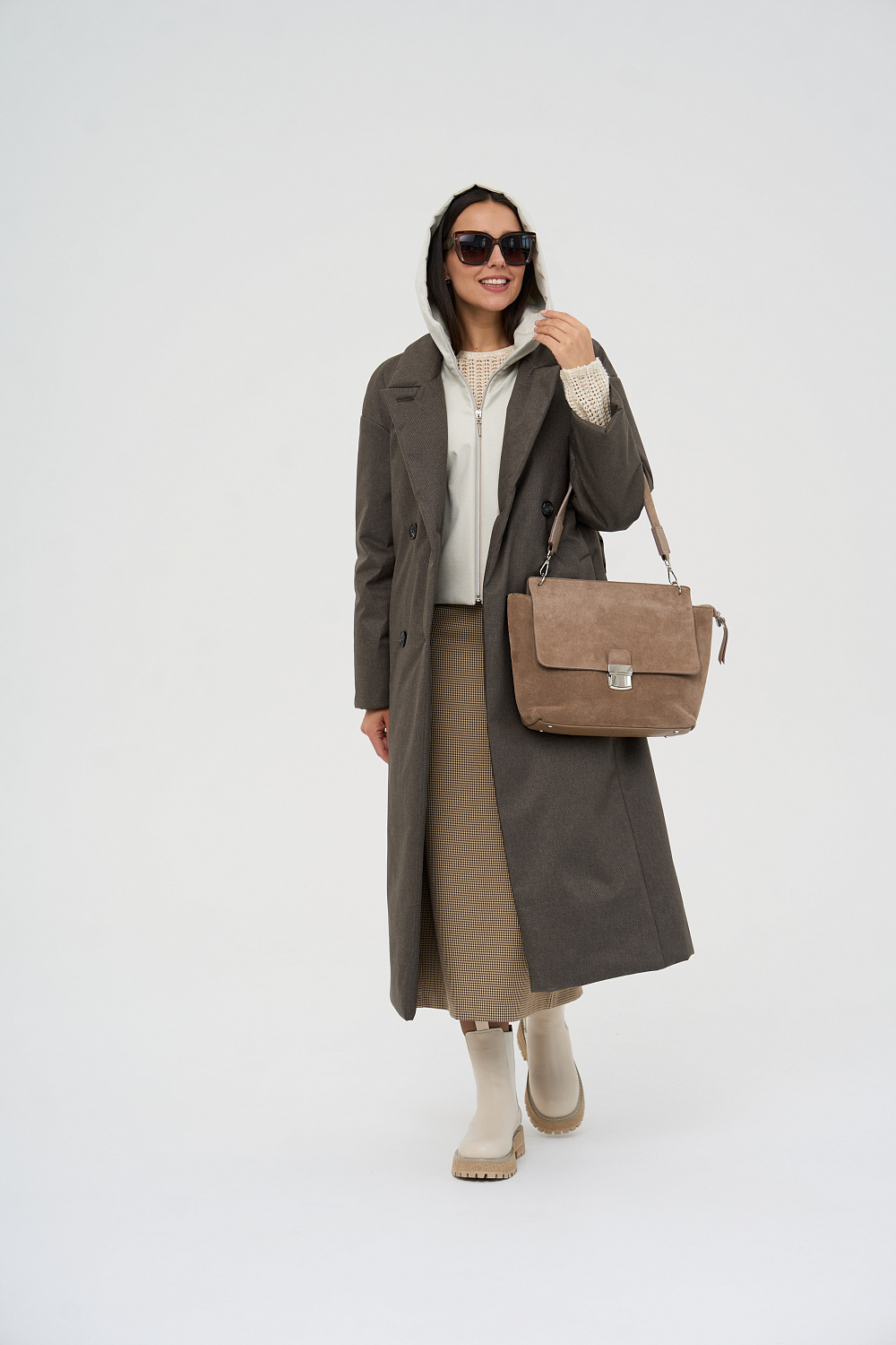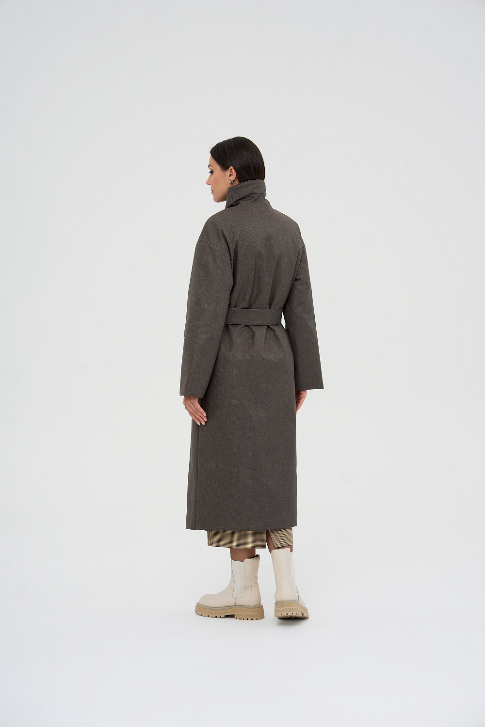 Пальто, утепленное женское прямого силуэта, двубортное, с застежками на 4 основные пуговицы и 1 супатную. Воротник – английский отложной, застегивающийся в стойку. На полочках обработаны удобные карманы в шве. Длина рукава может регулироваться отворотом. Женское пальто длины ниже колена (119 см) позволяет сочетать его с любыми предметами Вашего гардероба. Выпускается в двух ростах: в среднем (164-170 см, III) и высоком росте (170-176, IV).