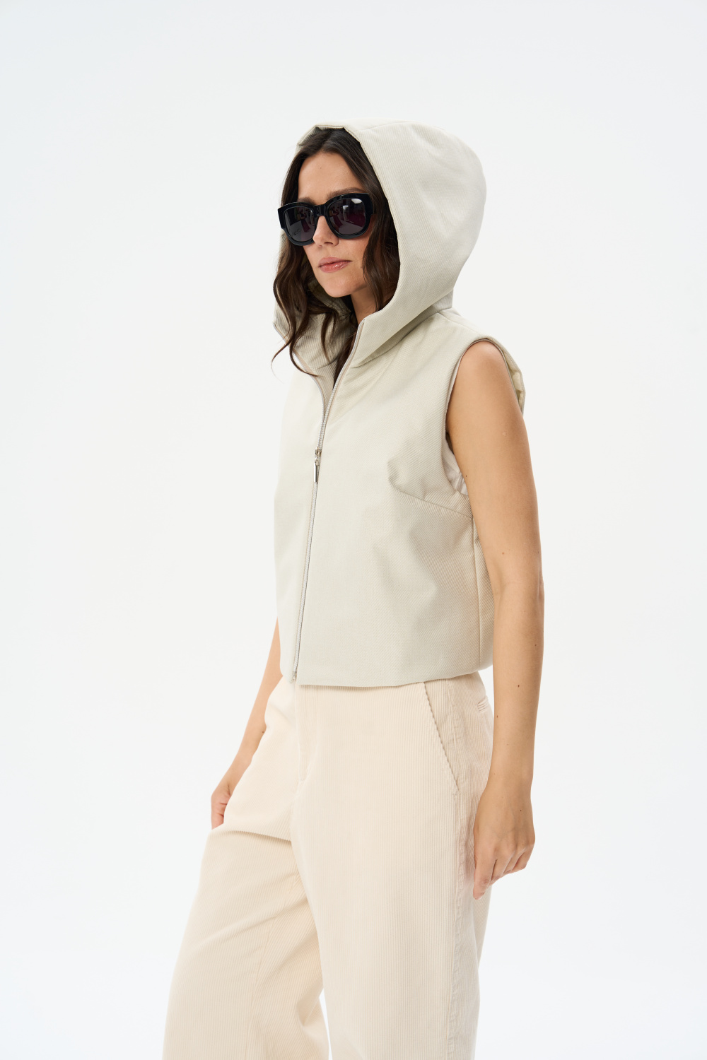 Жилет женский дополнен удобной и элегантной молнией. Капюшон защитит Ваши волосы в дождливую погоду. Универсальный прямой силуэт позволяет носить жилетку, как поверх верхней одежды, так и под Ваше любимое пальто или куртку, в качестве дополнительного утепляющего слоя. В более теплую погоду жилетка прекрасно впишется и в повседневный, и в элегантный образы.