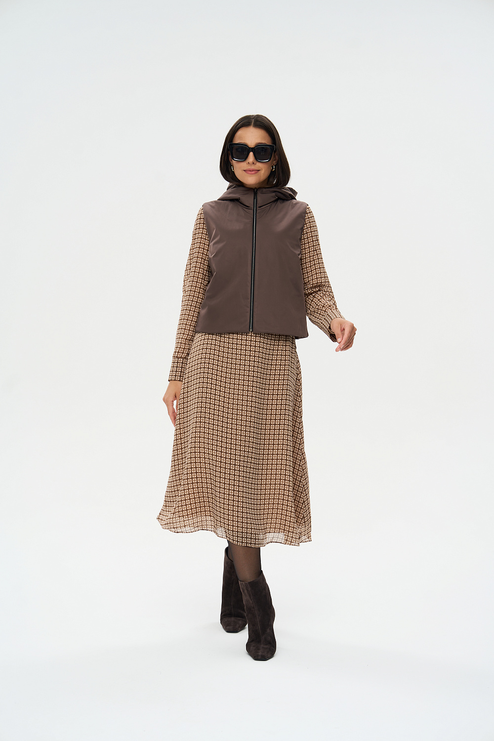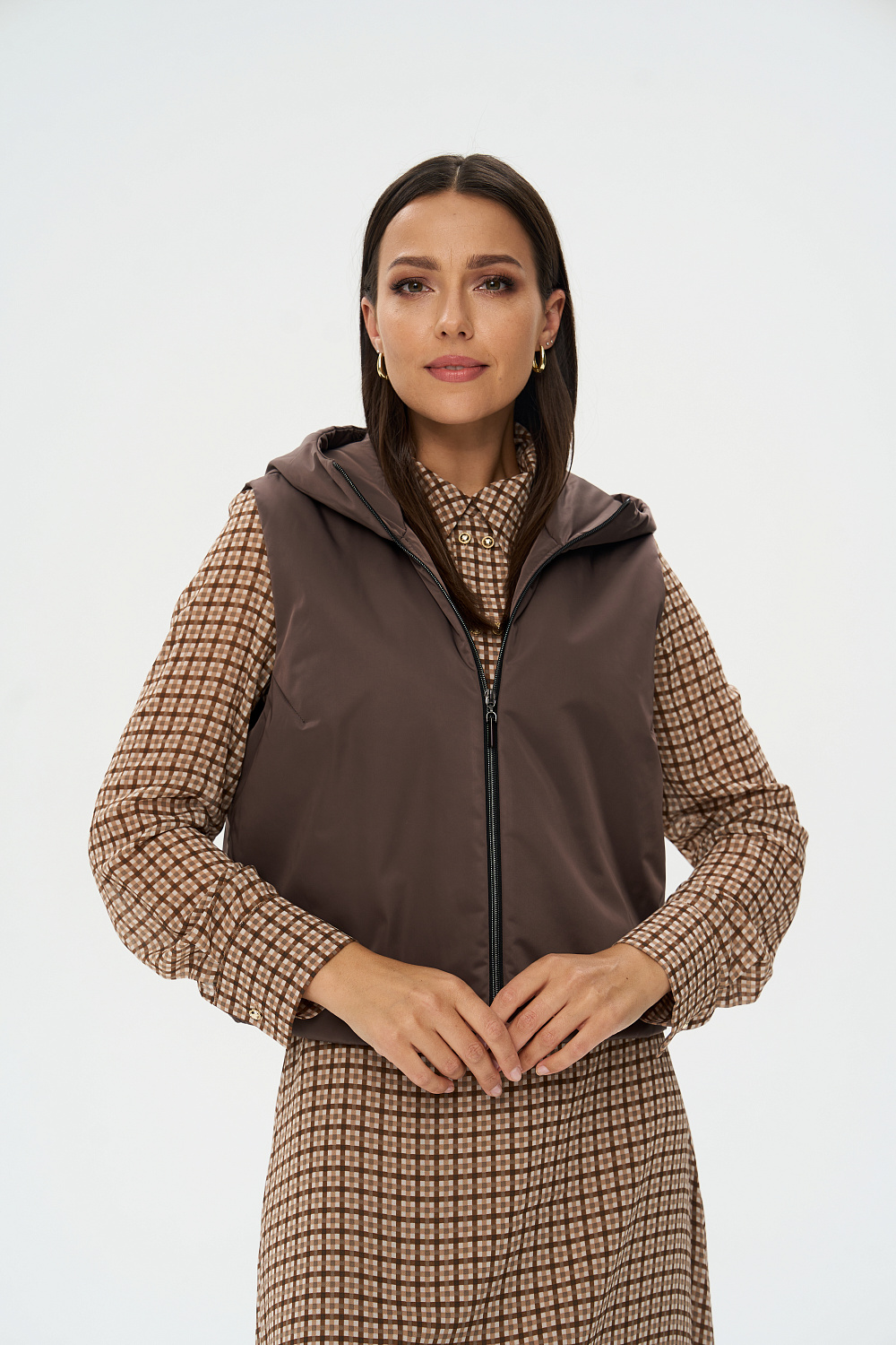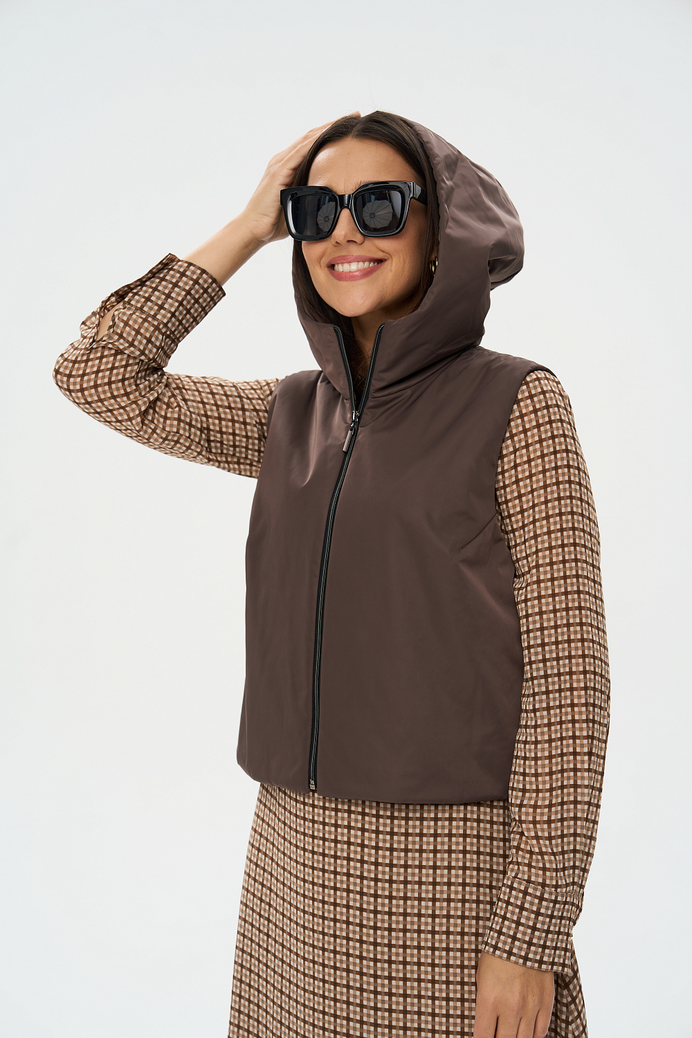 Жилет женский дополнен удобной и элегантной молнией. Капюшон защитит Ваши волосы в дождливую погоду. Универсальный прямой силуэт позволяет носить жилетку, как поверх верхней одежды, так и под Ваше любимое пальто или куртку, в качестве дополнительного утепляющего слоя. В более теплую погоду жилетка прекрасно впишется и в повседневный, и в элегантный образы.