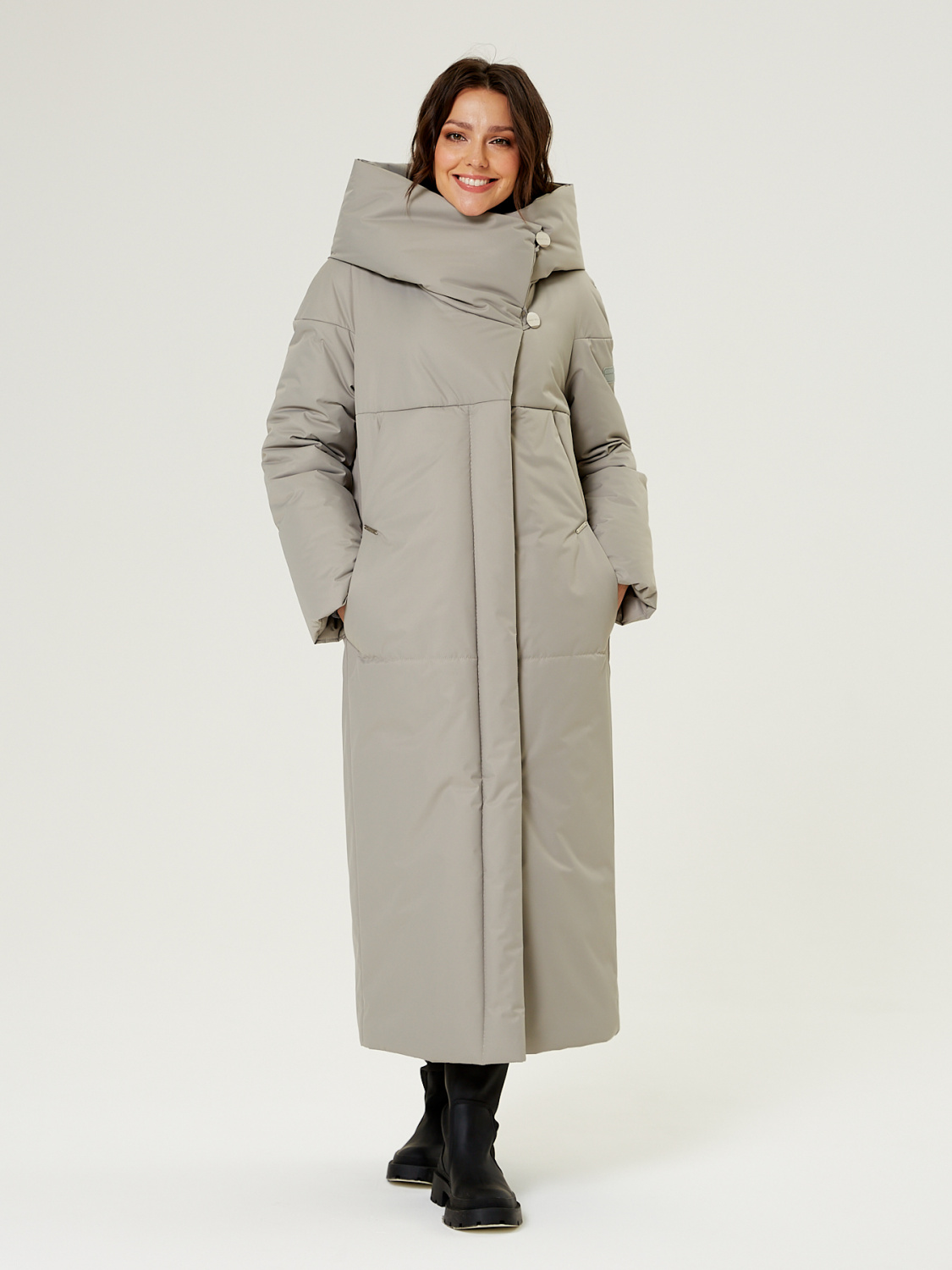 Пальто, утепленное женское прямого силуэта, однобортное, с застежками на 4 основные пуговицы и 2 супатные. От ветренной погоды Вас защитит регулируемый фасонный капюшон, который трансформируется в объемную стойку. На полочках обработаны по два удобных кармана в шве. Внутренняя кулиска позволит Вам сохранить тепло в ветренную погоду. Длина рукава может регулироваться отворотом. Зимнее женское пальто актуальной длины макси (125 см) позволяет сочетать его с любыми предметами Вашего гардероба. Выпускается в трех ростах: в низком (158-164 см, II), в среднем (164-170 см, III) и высоком росте (170-176, IV).
