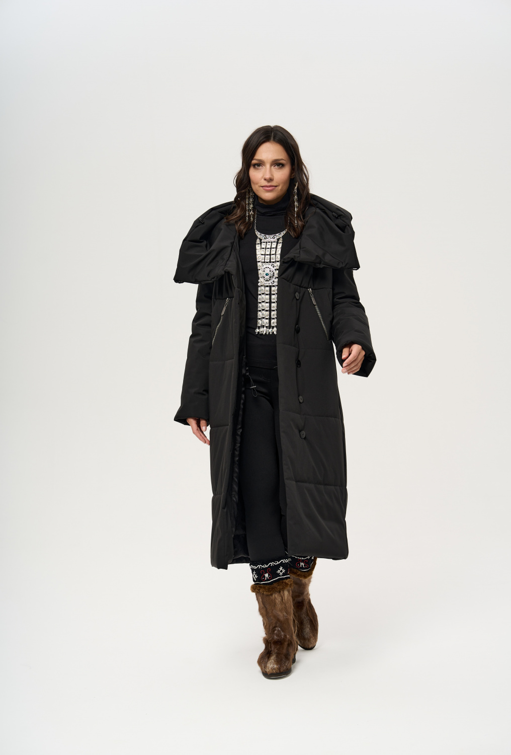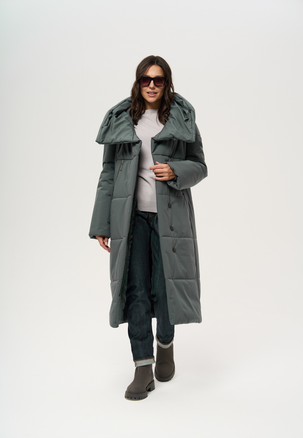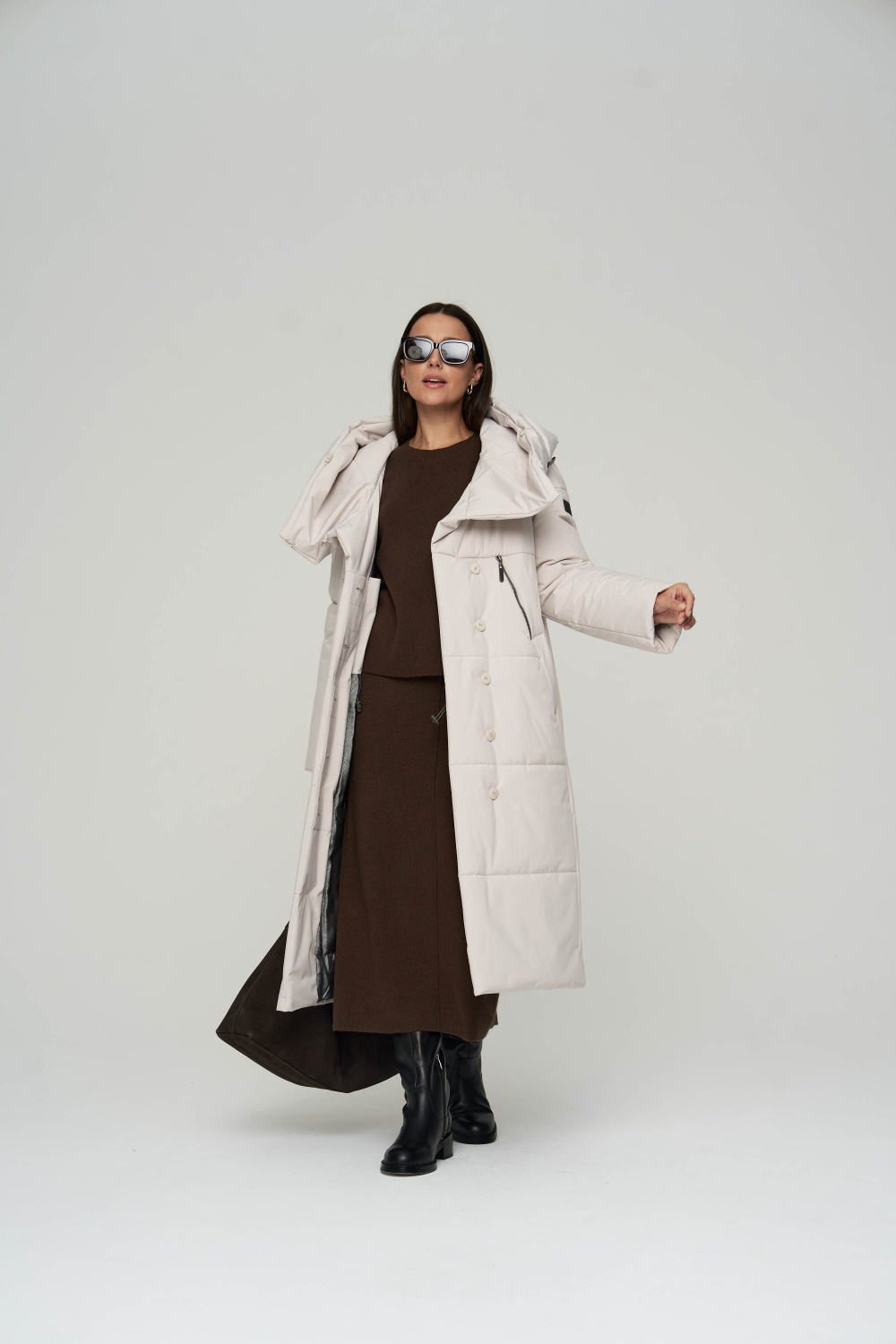 Очень теплое зимнее пальто с двойным утеплением из высокотехнологичной ткани прямого силуэта с глубоким несъемным капюшоном и объемным воротником, защищающие от зимней непогоды. Инновационный утеплитель вальтерм. Италия. Два слоя - 200+80 гр/м. Детали: супатная застежка; 6 утепленных карманов, 2 из которых застегиваются на молнию; регулируемая кулиска в капюшоне; внутренние манжеты. Жаккардовая поливискозная подкладка с регулируемой кулиской по талии и внутренним карманом. Большая подгибка рукава позволяет варьировать его длиной.